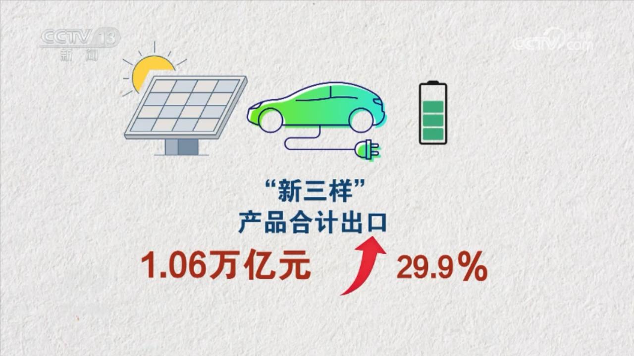 2023年,我国出口机电产品13.92万亿元,增长了2.9%,占出口总值的58.6%;同期劳动密集型产品出口4.11万亿元,占出口总值的17.3%。机电产品中,电动载人汽车、锂离子蓄电池及太阳能电池“新三样”产品合计出口1.06万亿元,首次突破万亿元大关,增长了29.9%。船舶、家用电器的出口分别增长35.4%和9.9%。