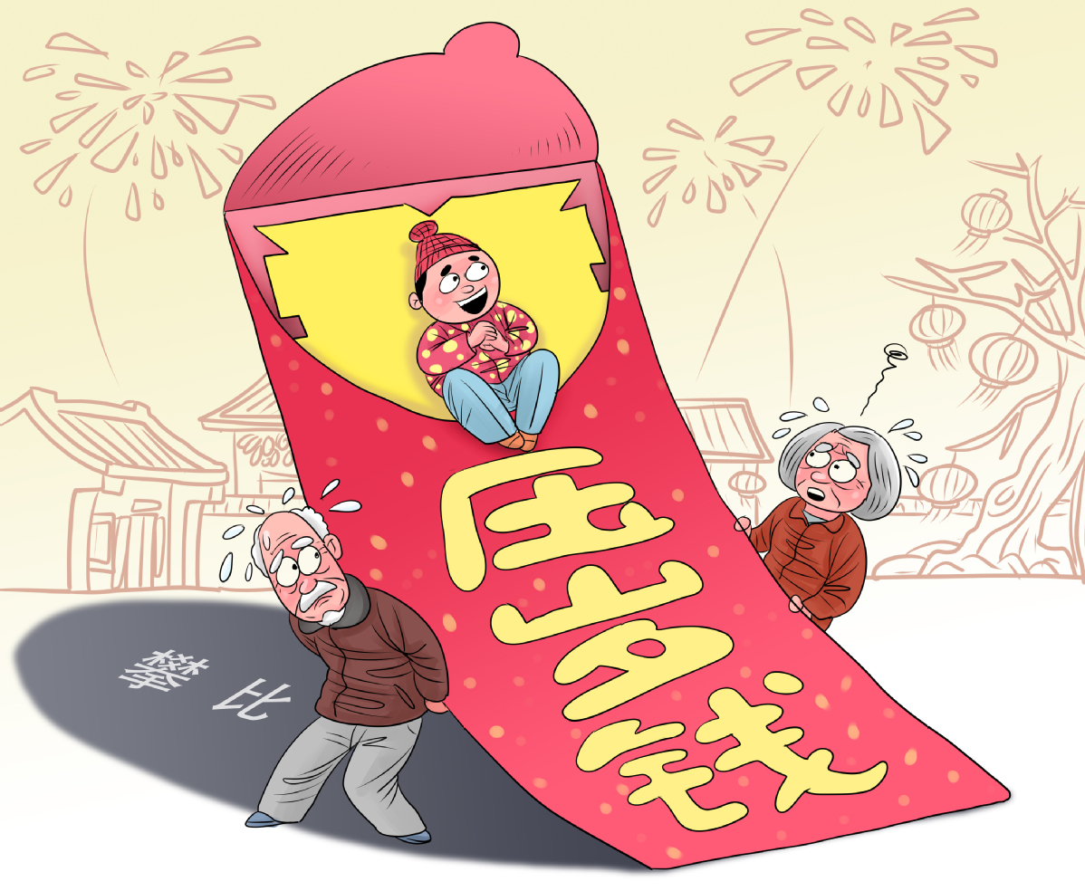 春节期间,长辈给晚辈发压岁钱,是一种民间习俗,以求平安吉祥。压岁钱不在金额多少,只要能表达祝福和关爱的意义即可。然而,近年来由于相互攀比,压岁钱数额越来越高,给不太宽裕的家庭,尤其没有固定收入的农村老人,增加了沉重的经济负担。“压岁钱过高”事关家庭和睦和乡风文明,有关部门切勿仅把其当作家事,应加强宣传教育力度,引导基层组织将压岁钱的合理发放纳入村规民约、村民家风家训之中,倡导文明、节俭、健康的过年习俗。