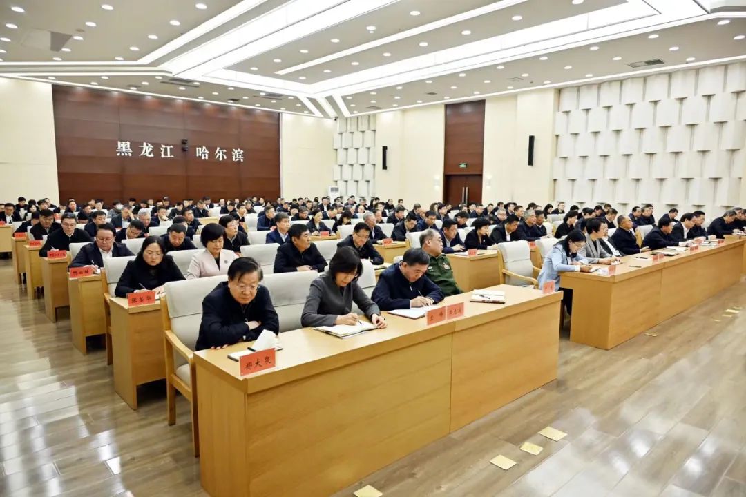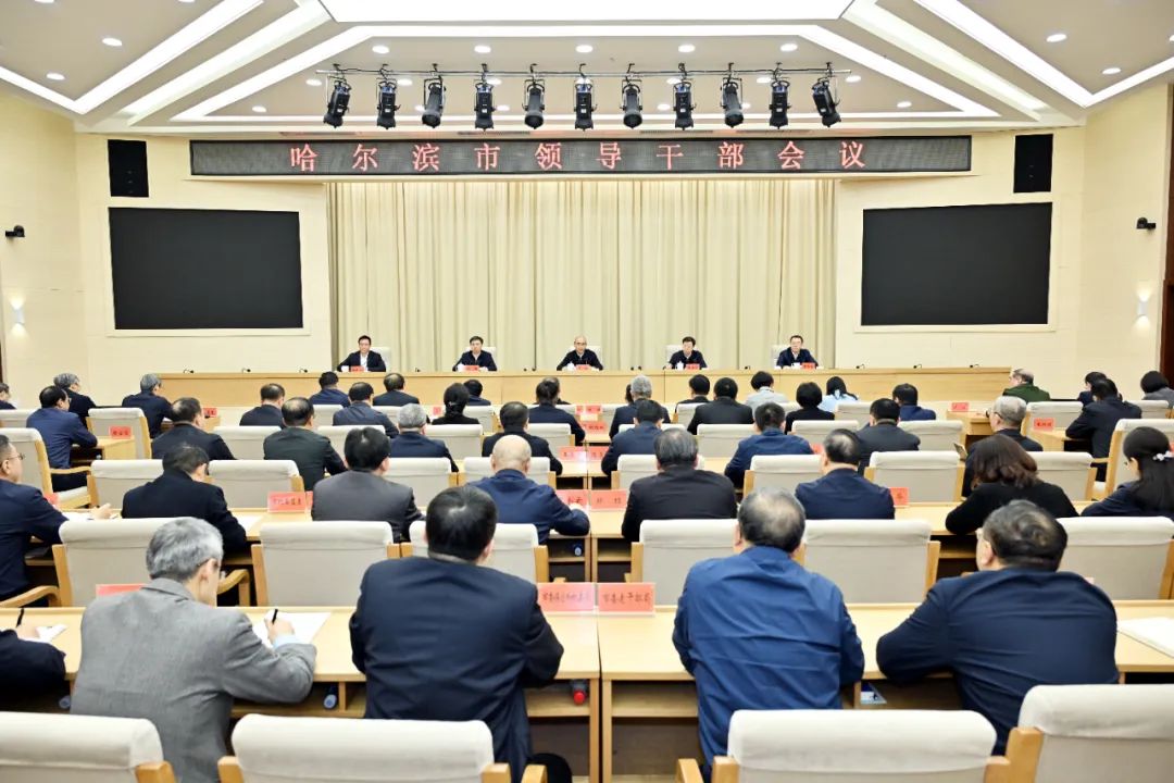 哈尔滨市市长张起翔作表态发言。哈尔滨市领导孙喆、孙珅,及市委、市人大、市政府、市政协领导班子成员,各区(县)和哈尔滨市直各部门主要负责同志等参加会议。