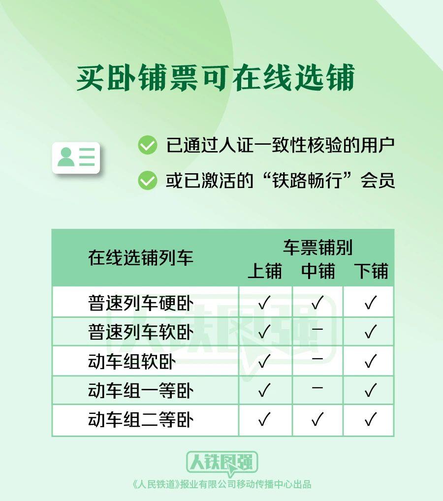 旅客在铁路12306网站和App上购买卧铺车票时,普速列车软卧、硬卧和动车组软卧、一等卧、二等卧等铺别可在线自主选铺。