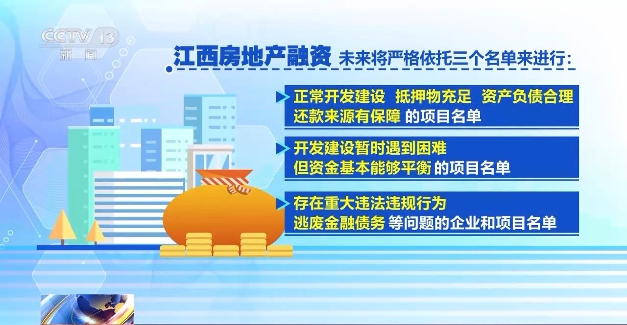 在此基础上,江西房地产融资未来将严格依托三个名单来进行:一个是正常开发建设、抵押物充足、资产负债合理、还款来源有保障的项目名单,一个是开发建设暂时遇到困难但资金基本能够平衡的项目名单,一个存在重大违法违规行为、逃废金融债务等问题的企业和项目名单。对正常开发建设的项目,建立授信绿色通道,积极满足合理融资需求;对暂时困难的项目,按照“一项目一方案”的方式,采取贷款展期、调整还款安排、新增贷款等方式予以支持;对违法违规等情况的企业和项目,提示金融机构审慎开展授信。