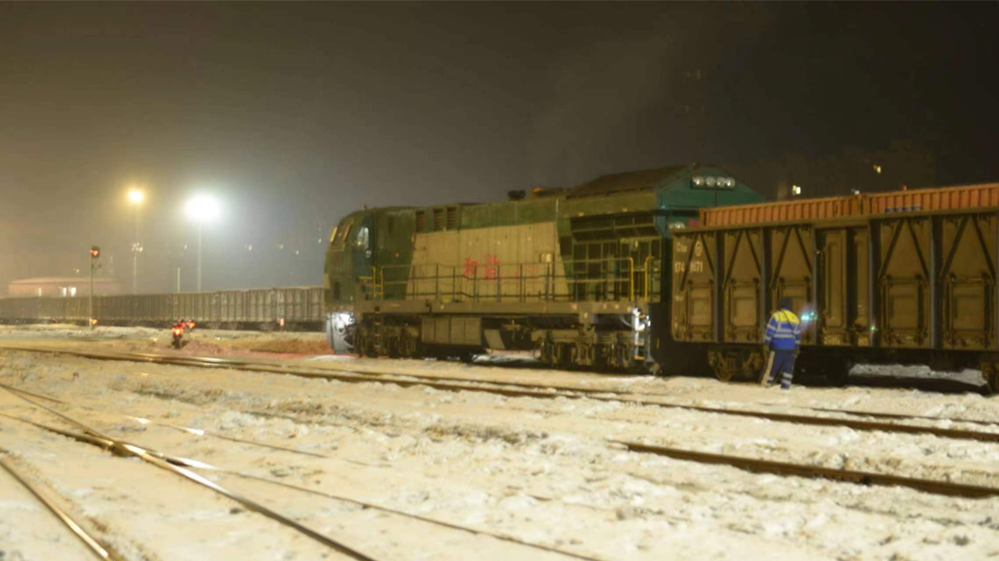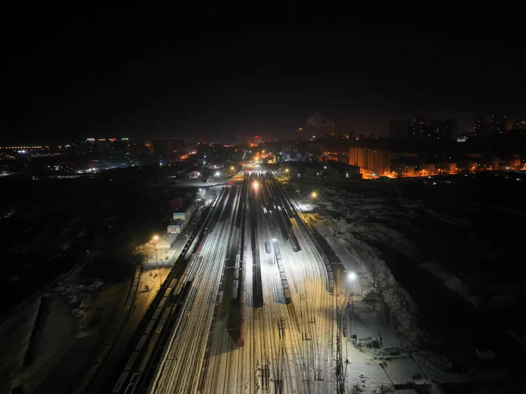 鸡西站编组场夜间作业场景(央广网发 成伟铭 摄)