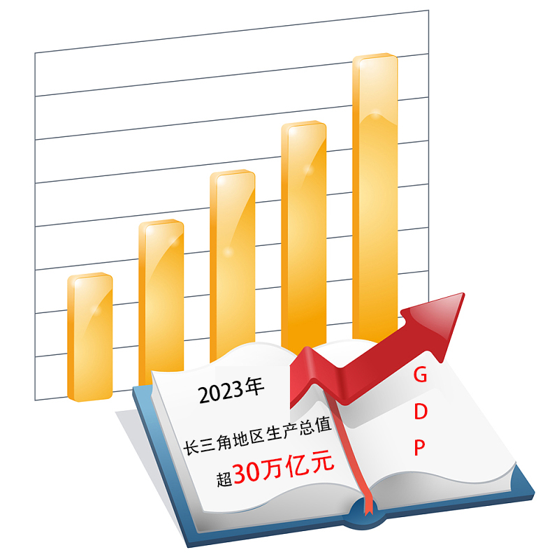 横向看,长三角GDP平均增速5.65%,高于全国增速5.2%、高于京津冀平均增速5%;纵向看,2023年长三角GDP增量超1.4万亿元,相当于一个坐稳“GDP万亿俱乐部”城市一年的经济总量。
