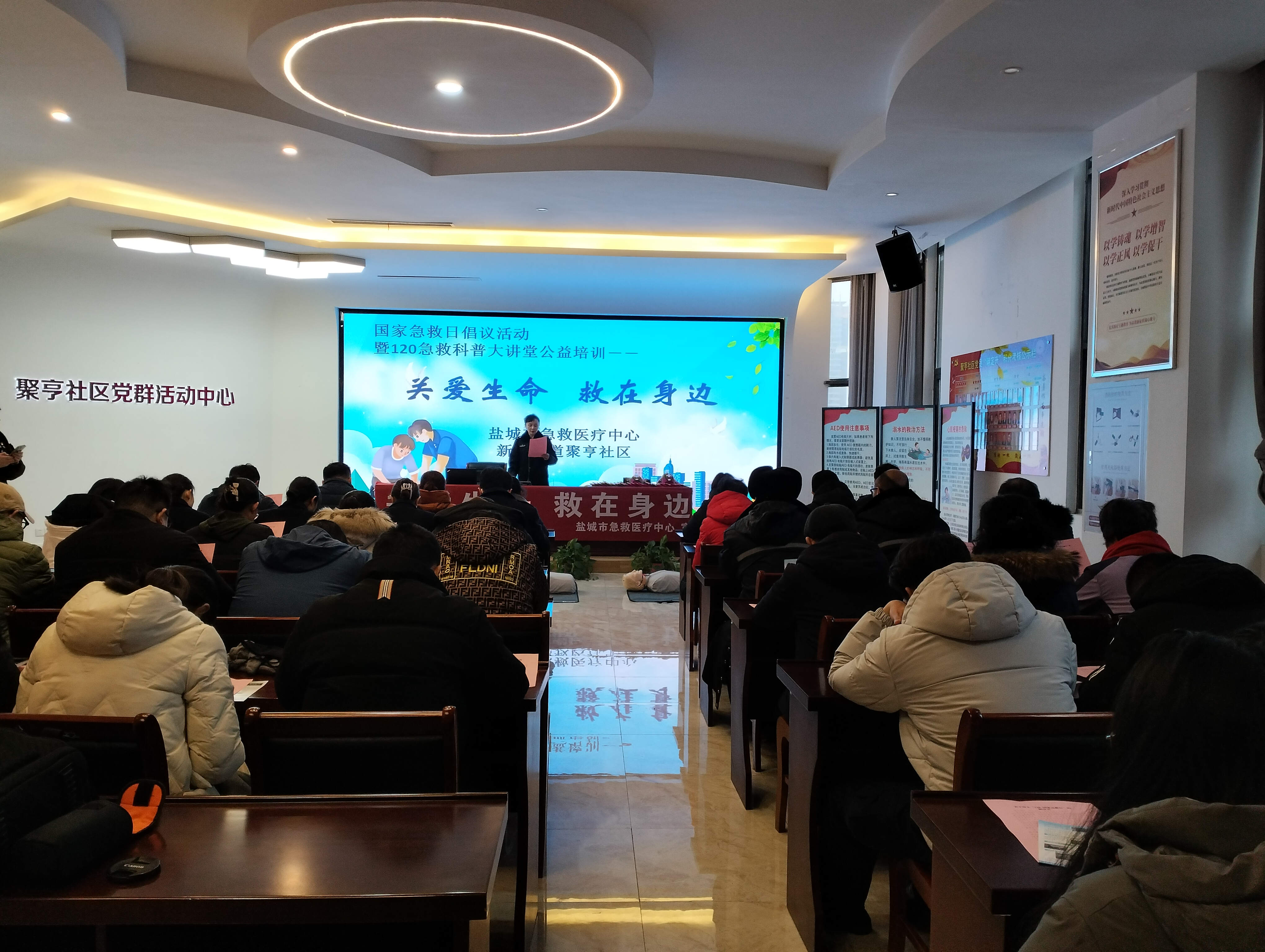 新华报业网讯 “建议将每年1月20日设立为‘国家急救日’,推动全社会关注急救,促进我国急救体系不断完善,为‘健康中国’保驾护航……”近日,为提高全民公众急救意识、增强公众自救互救能力,构建社会大急救格局,盐城市急救医疗中心走进盐南高新区新河街道聚亨社区,举办“国家急救日倡议活动暨120急救科普大讲堂公益培训”。