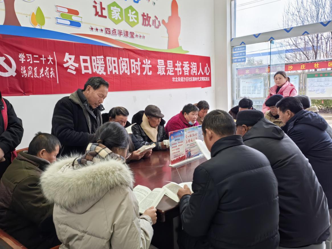 新华报业网讯 2024年开年之际,为打造新年阅读文化,激发群众阅读兴趣,营造浓郁读书氛围,切实推动全民阅读活动提质增效,滨海县坎北街道新时代文明实践所组织全街道实践站开展“冬日暖阳阅时光 最是书香润人心”全民阅读迎春系列活动。