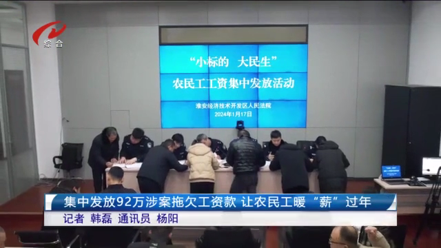 春节临近,为了帮广大农民工解决烦“薪”事,让大家可以暖“薪”过年,日前,江苏省淮安经开区法院对一起涉农民工工资案件举行涉案执行款集中发放活动,现场为36名农民工发放被拖欠工资92万元。
