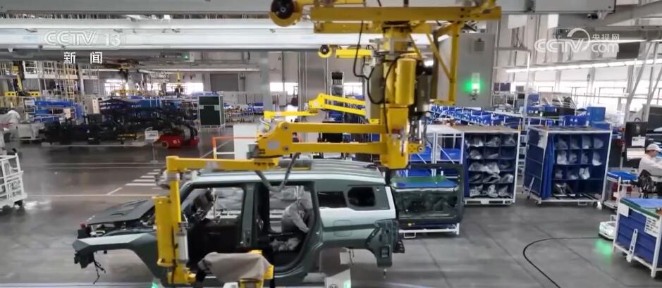 这款车是东风集团与2021年在“跃迁计划”下诞生的电动越野车,沿袭的是东风传统的军用越野车,但来到生产车间,我们却发现了很多并不“传统”的东西。外观全透明的总装车间,生产流程一目了然,生产线并非流水式,而是模块化、柔性化的产线,因为这里生产的每一台车,配置可能都不一样,打开APP,用户可以在线选择个性化的购车方案。