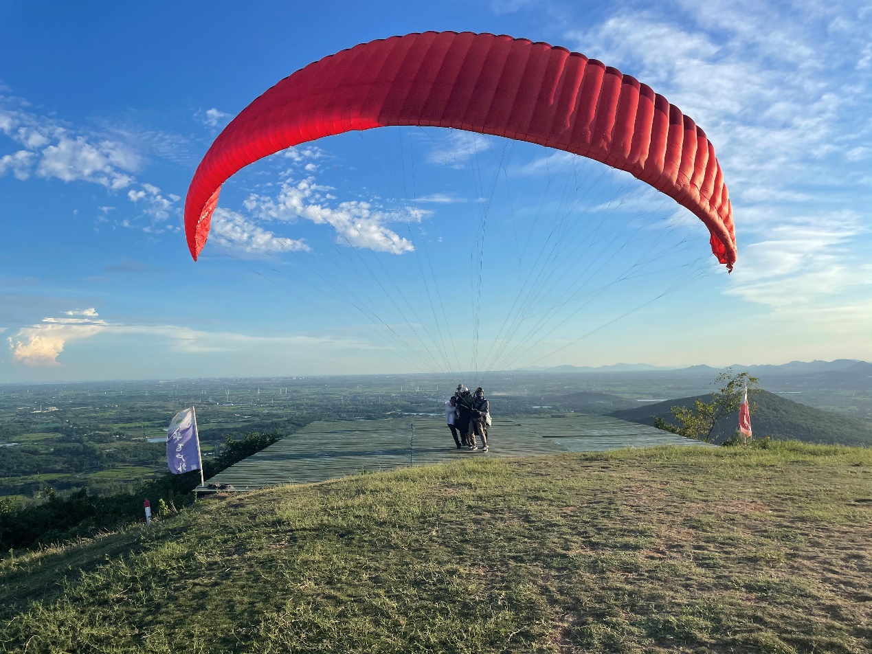 依托赭洛山山体优势,不远处的南京华飞滑翔伞户外飞行营地则拓展了村庄的旅游板块。营地教练章曙东介绍,营地占地200亩,2019年正式运营。营地由几个滑翔伞爱好者共同投资建设。做滑翔伞飞行营地,两个要素缺一不可:一是山头,二是良好的净空条件,即周边没有高楼大厦等高大障碍物及电线、高压线等。同时尽量环境良好、景色美观一点。“通过考察,九华村地理位置绝佳,我们便在这里驻扎下来。目前,这里是离南京市最近的一处滑翔伞飞行营地。”