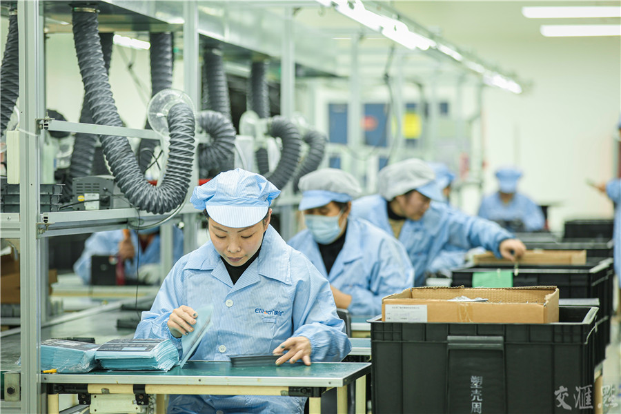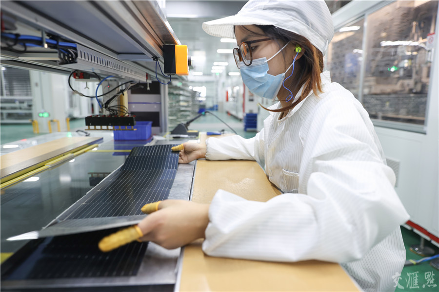 新年伊始,连云港市赣榆经济开发区一家光伏企业的工人在生产线上忙碌,力争实现“开门红”。司伟 董自文 摄 视觉江苏网供图