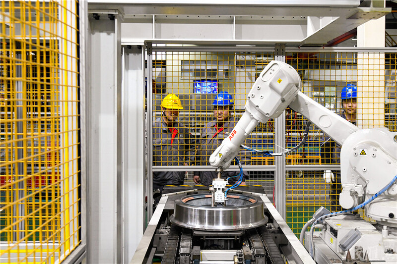 近日,中车戚墅堰所铁马公司研发的弹性车轮正在智能生产线上加紧生产。该产品是首款采用正向自主设计的减振降噪地铁弹性车轮,针对我国地铁车辆载客量大、运行速度快、线路状况复杂等特点,对产品结构及性能进行了全新设计。夏晨希 摄 视觉江苏网供图