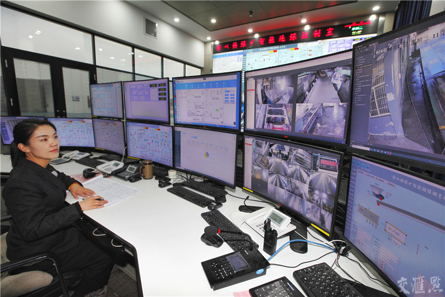 1月16日,徐矿集团张双楼煤矿智能洗选控制室,工人在监控煤炭洗选现场情况。近年来,张双楼煤矿运用5G、大数据、云计算、物联网、人工智能等新一代信息技术,持续推进机械化换人、自动化减人、智能化无人建设,实现对采掘、运输、洗选、智能防冲等远程控制,在“减人、提效、保安”方面成效明显,成为国家首批智能化示范建设煤矿。蒯创 摄 视觉江苏网供图