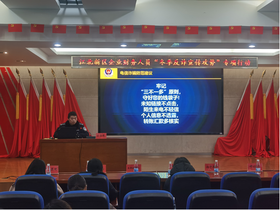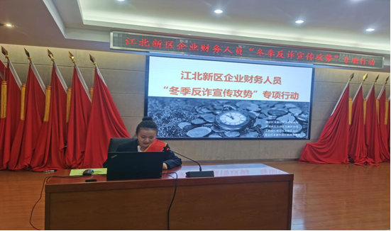 活动一开始,新区财政局向企业财务人员传达了上级关于反诈专项行动的工作精神,通过反诈宣传活动,推动《中华人民共和国反电信网络诈骗法》的贯彻落实,提高企业财会人员的防骗意识和识骗能力,加强企业内部的风险防控机制,降低诈骗案件的发生率,为企业财产安全筑起“防火墙”。工行新区分行通过发放宣传折页、张贴宣传海报、曝光企业遭遇电信网络诈骗的典型案例,梳理财务控制关键环节和风险点,有效增强了企业财会人员对电信网络诈骗关联违法犯罪的认识和有害信息的辨别力。新区公安局针对冒充公检法等财会人员容易遇到的电信网络诈骗高发类案件播放宣教视频,深刻揭露不法分子的作案手法和诈骗套路,提高了参会人员的反诈防范意识。