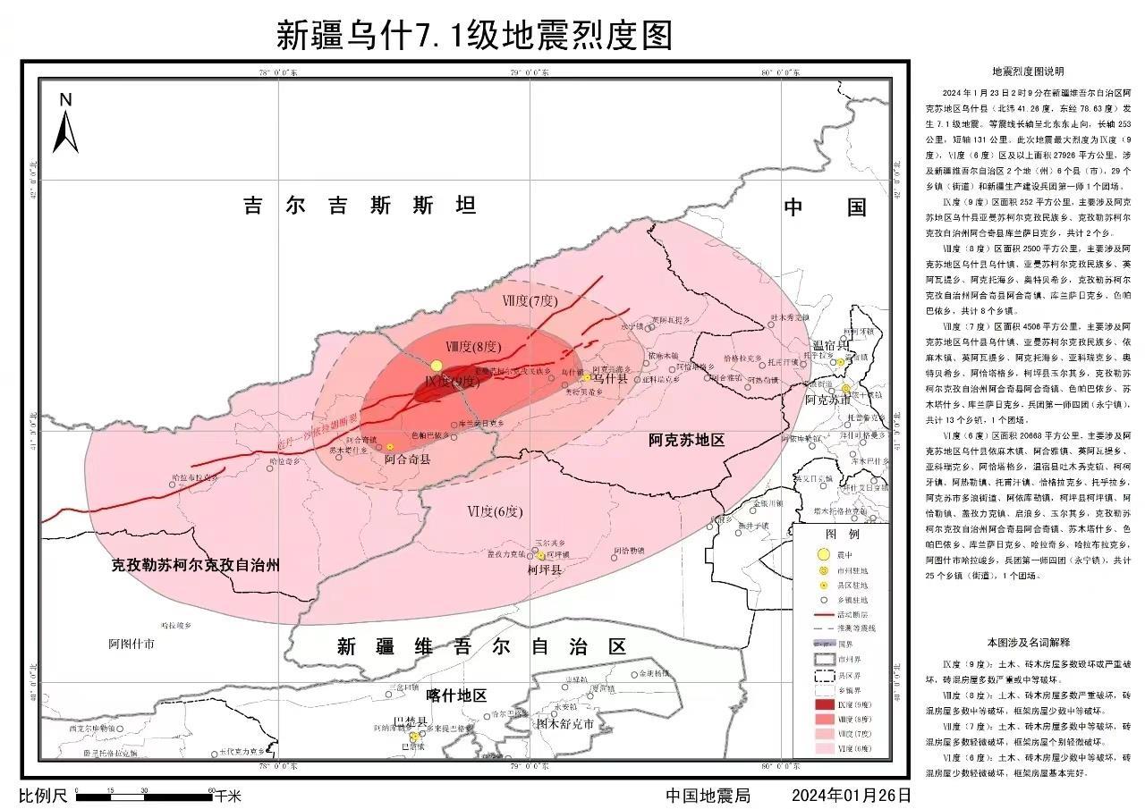 1月23日2时9分,新疆维吾尔自治区阿克苏地区乌什县发生7.1级地震。