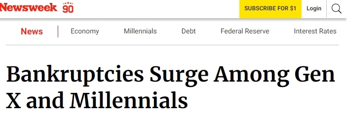 中国日报网1月28日电 据美国《新闻周刊》(Newsweek)网站日前报道,美国X世代和千禧一代申请破产援助人数的增加预示着该国债务危机正在迅速蔓延。