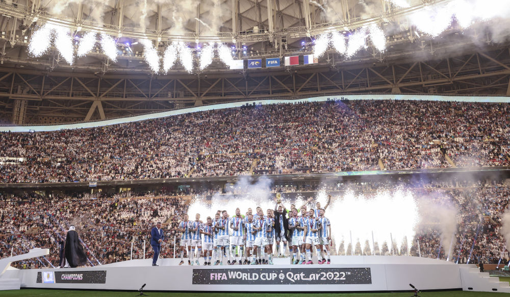 这份题为《交付精彩》的报告说,卡塔尔世界杯一共产生172粒进球,为历届之最。本届世界杯现场观众数为340万,上座率达到96.3%。世界杯期间,球迷和游客共消费147亿美元(约合1056亿元人民币)。为举办世界杯,卡塔尔基建投资达到2000亿美元(约合14364亿元人民币)。