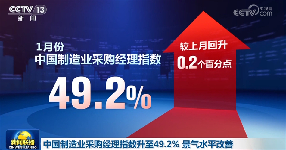 中国物流与采购联合会、国家统计局服务业调查中心1月31日公布,1月份中国制造业采购经理指数为49.2%,较上月回升0.2个百分点,结束了连续3个月下降势头,景气水平有所改善。