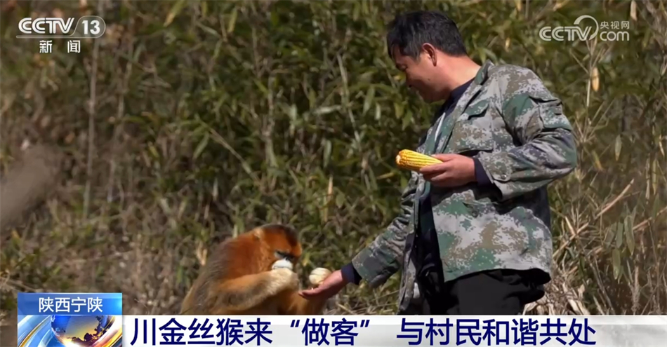 在秦岭山区新场镇同心村,由于临近川金丝猴栖息地,村民们就经常可以一睹“猴子来串门”的新鲜事。对于这些不速之客,村民们没有刻意干扰。