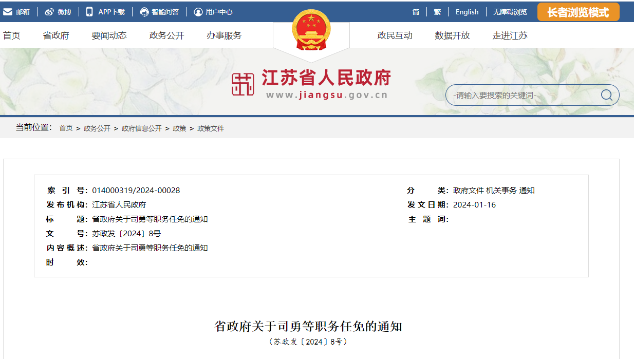 任命邱泽森为省民政厅副厅长,免去其省卫生健康委员会副主任职务;