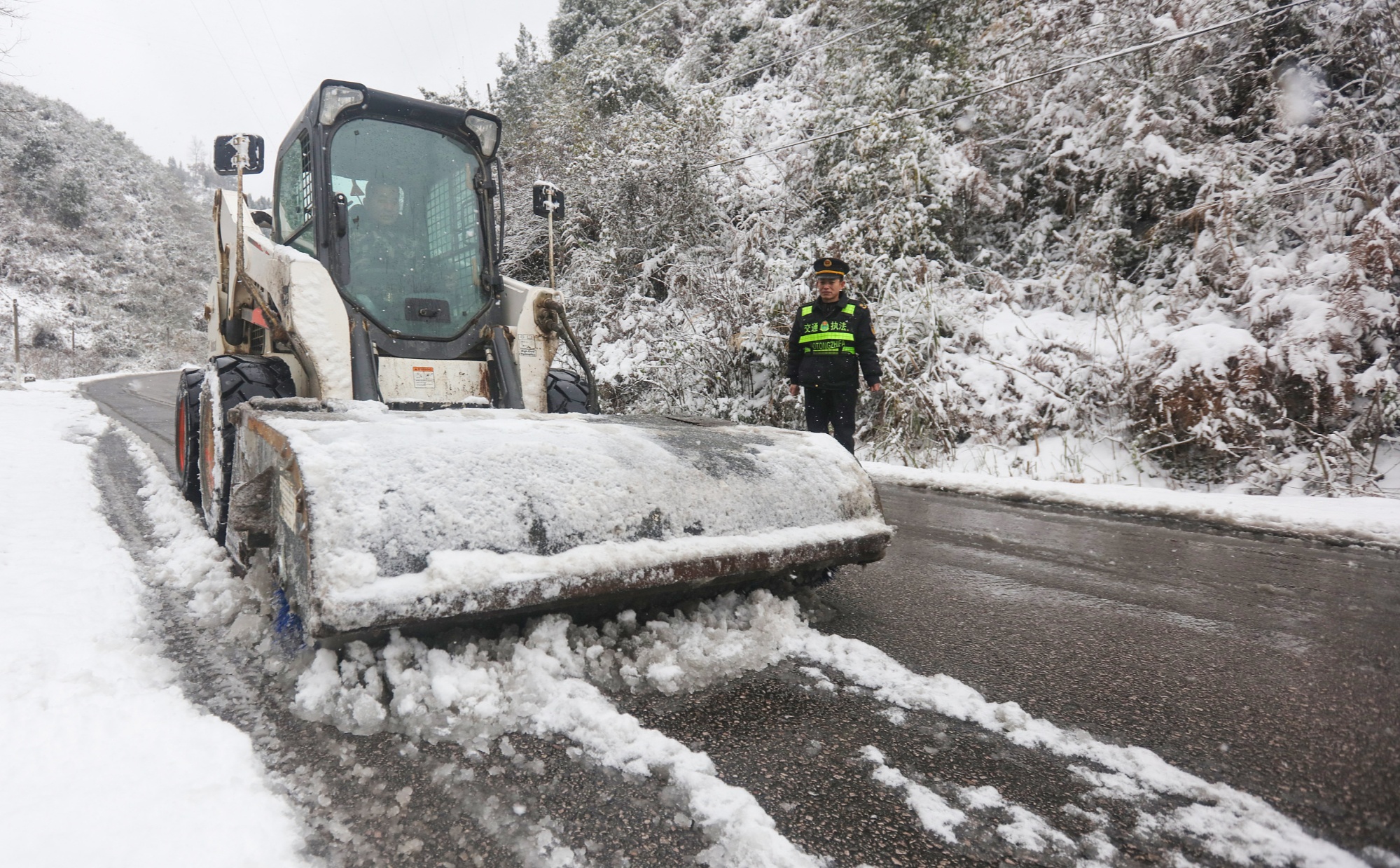 贵州黔东南迎大范围雨雪天气,公路管护人员在进行路面除冰雪工作