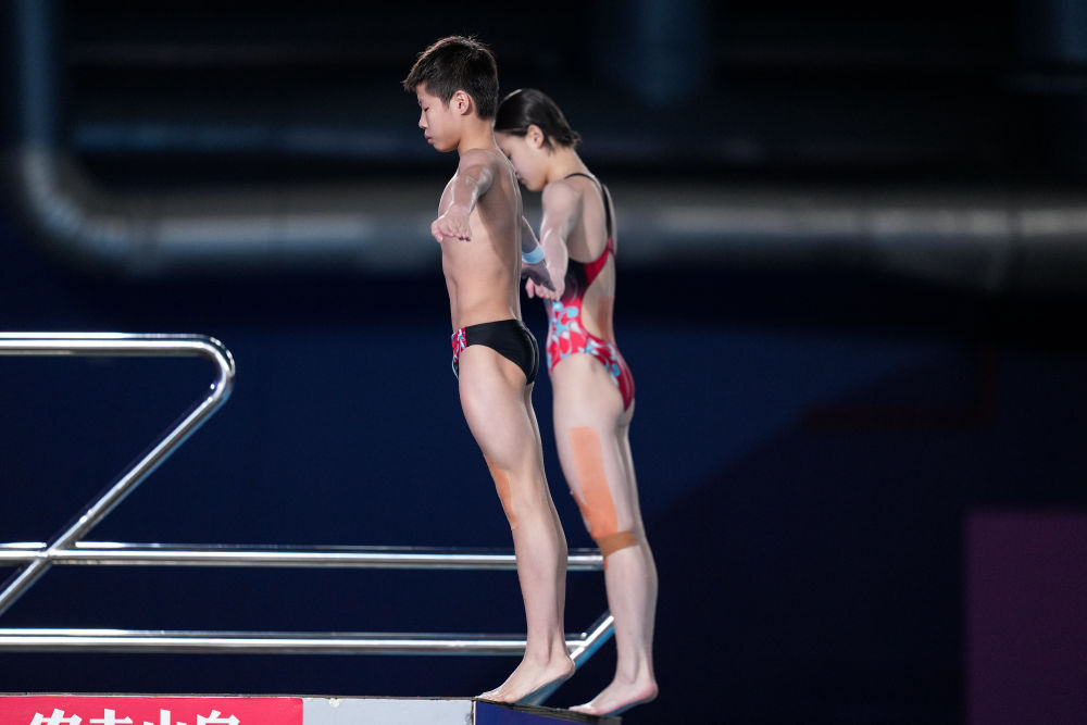 新华社多哈2月3日电 3日,在卡塔尔多哈举行的世界游泳锦标赛跳水项目混合双人10米台决赛中,奥运冠军张家齐和不满14岁的黄建杰搭档赢得冠军,这是中国队在本届世锦赛收获的第一金。