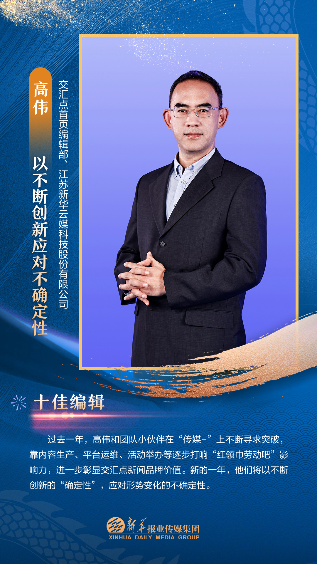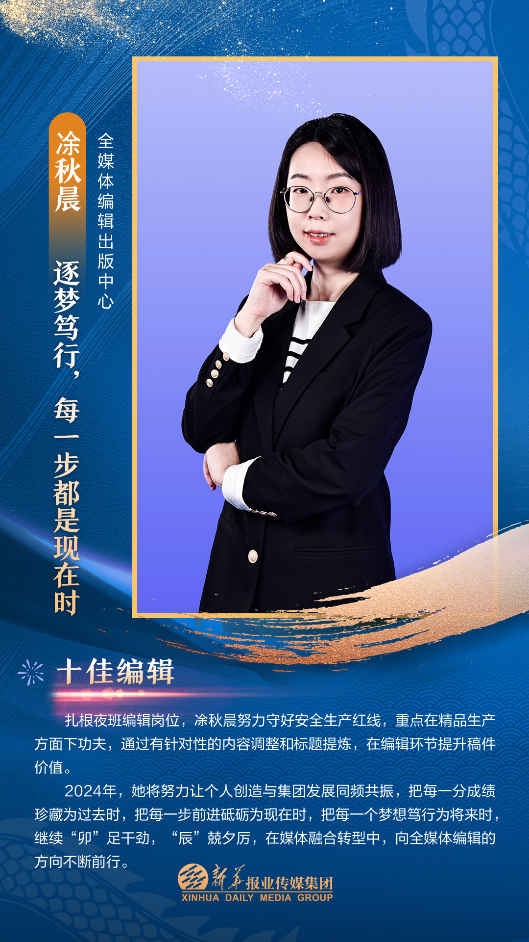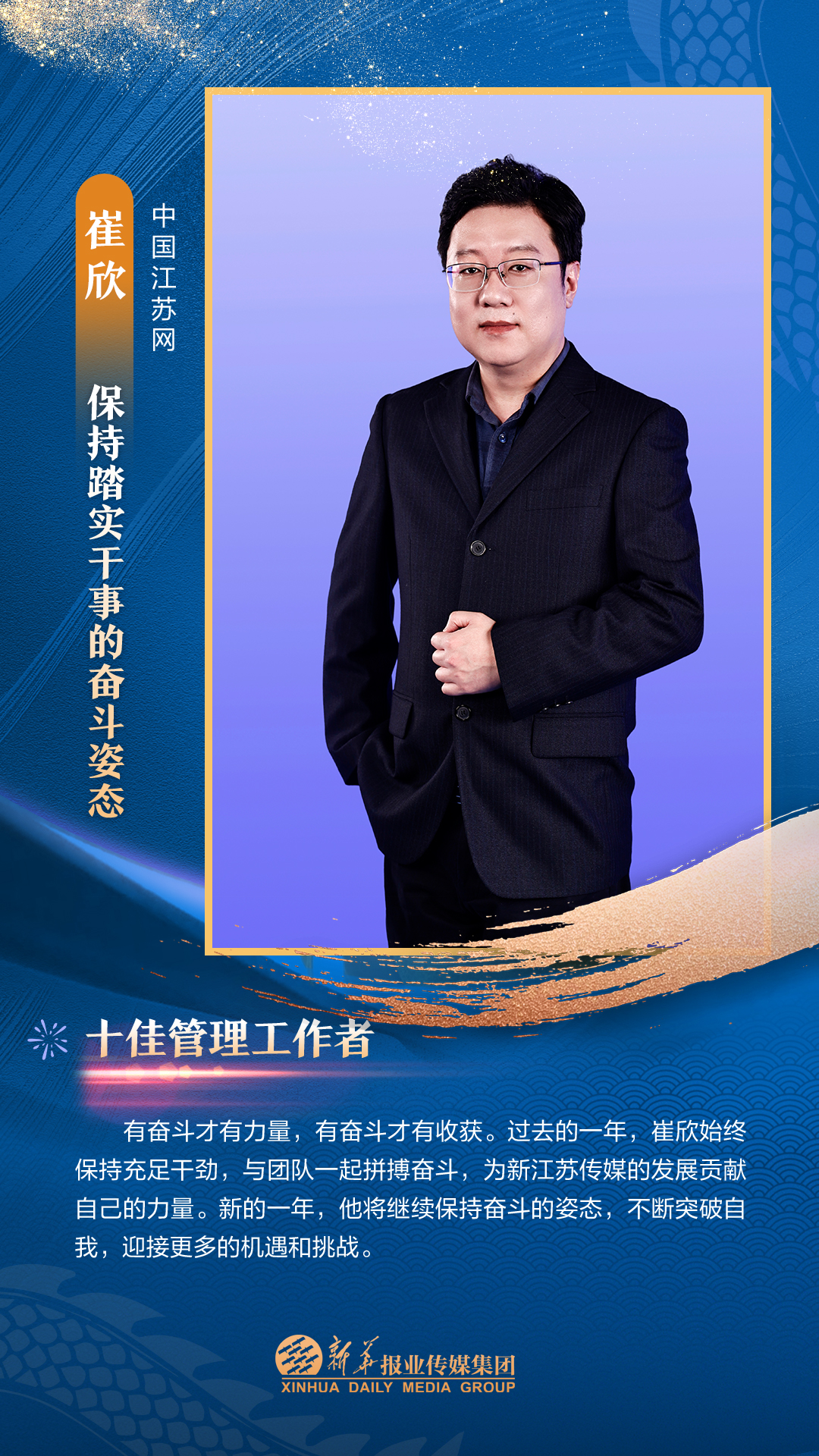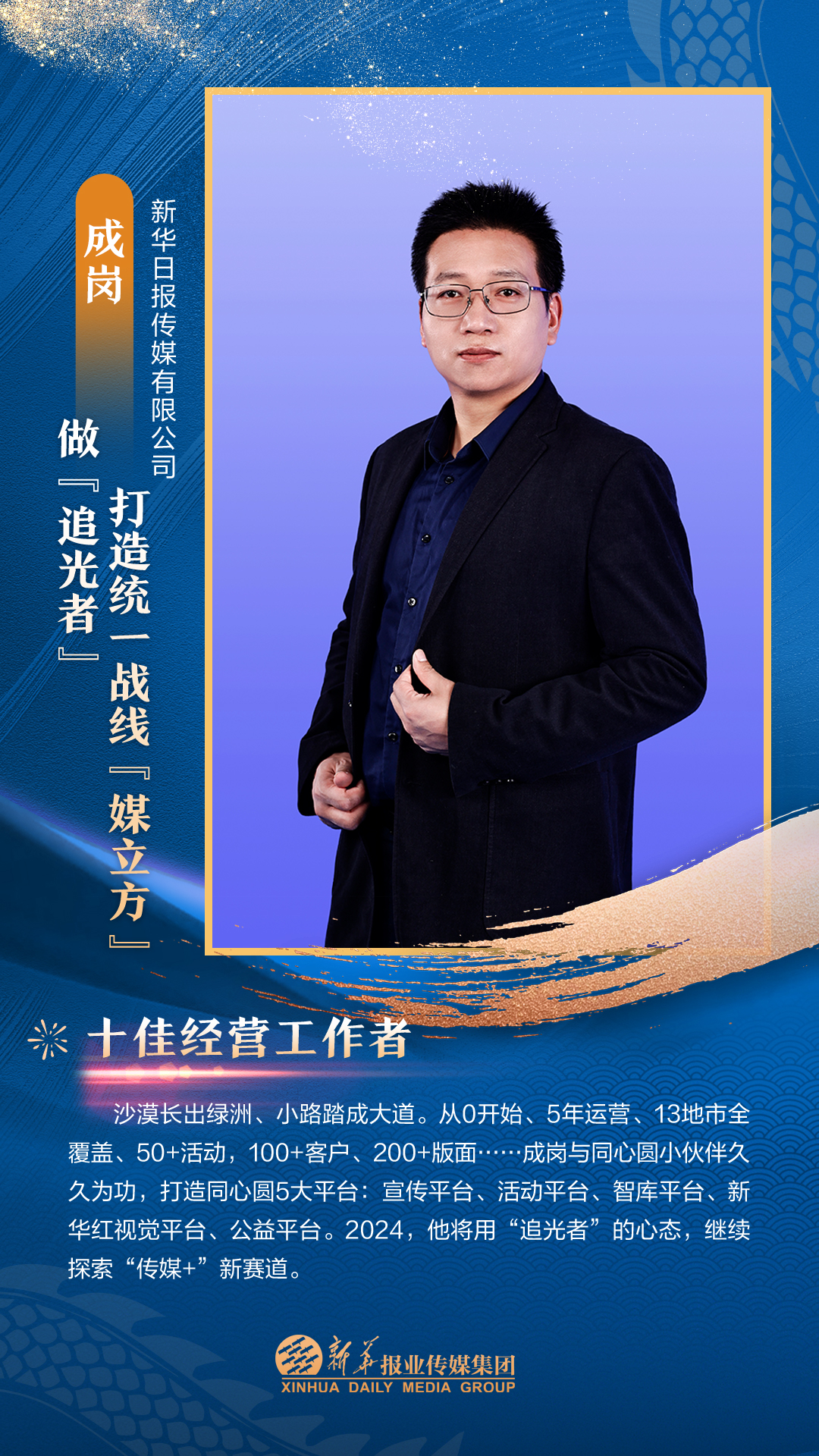 他们是集团3000多名员工的先进代表,从集团各个岗位、部门汇聚而来。在每一个新闻的现场披荆斩棘,只为把第一手讯息向外传播;在每一个寻常的日子夜以继日,只为及时把最好的版面交给读者;在每一个重要活动筹备中绞尽脑汁,只为把新华IP擦得更亮;在每一个看似不起眼的角落加班加点,只为各项事务工作有序高效运转;在每一次服务时当好贴心“店小二”,只为护航集团高质量发展……