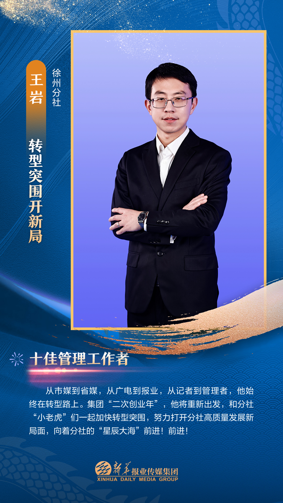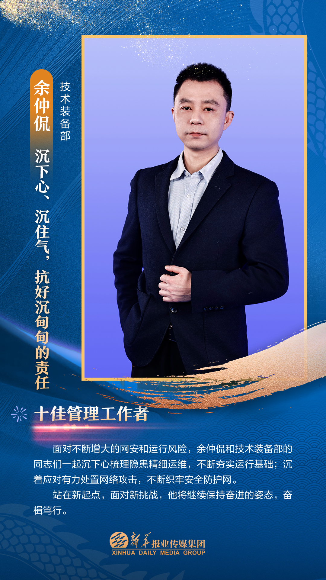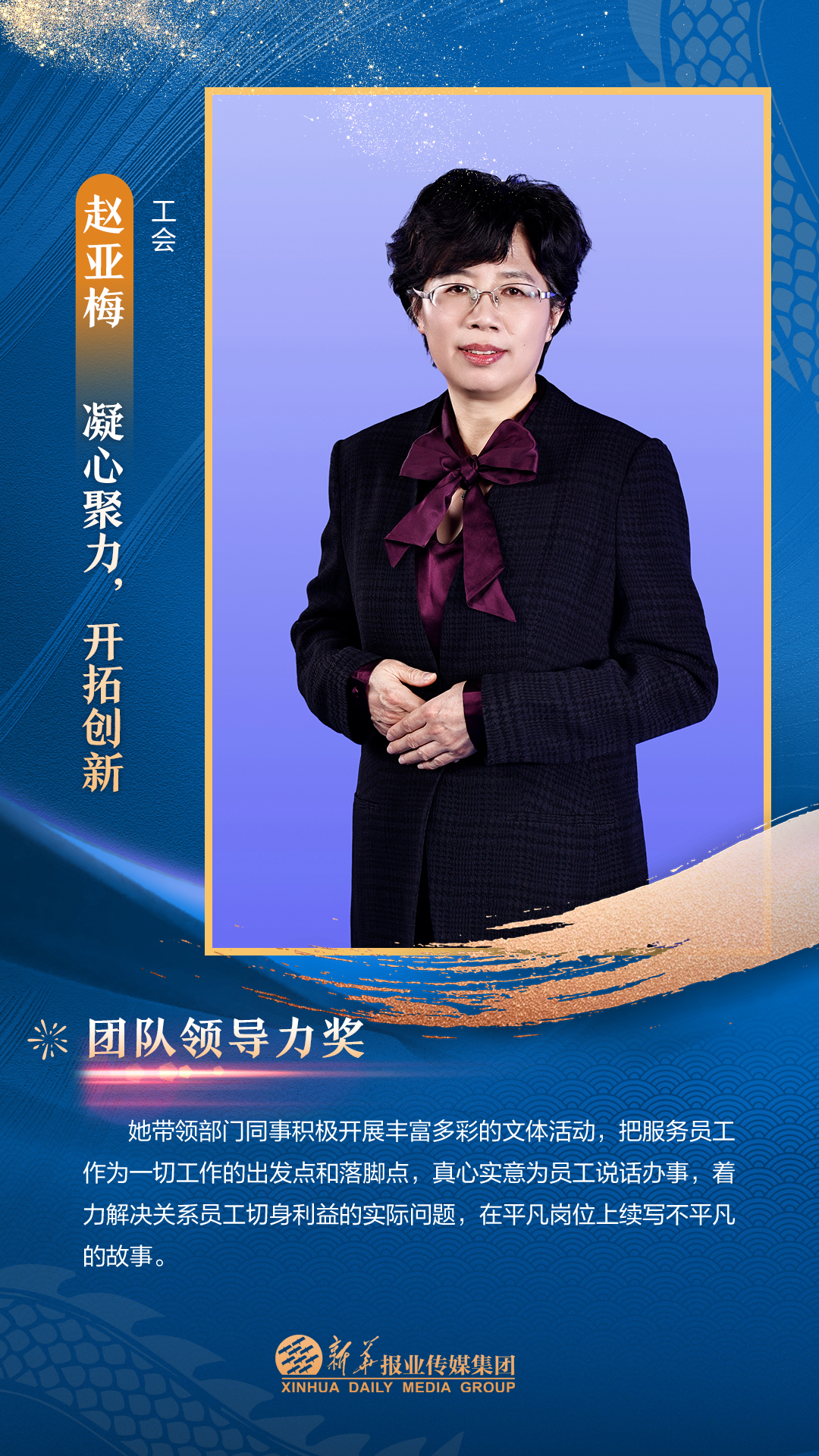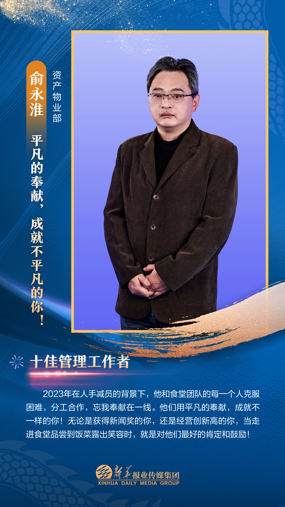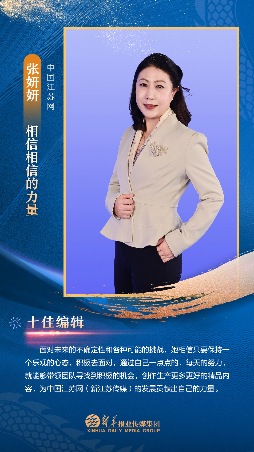 他们是集团3000多名员工的先进代表,从集团各个岗位、部门汇聚而来。在每一个新闻的现场披荆斩棘,只为把第一手讯息向外传播;在每一个寻常的日子夜以继日,只为及时把最好的版面交给读者;在每一个重要活动筹备中绞尽脑汁,只为把新华IP擦得更亮;在每一个看似不起眼的角落加班加点,只为各项事务工作有序高效运转;在每一次服务时当好贴心“店小二”,只为护航集团高质量发展……