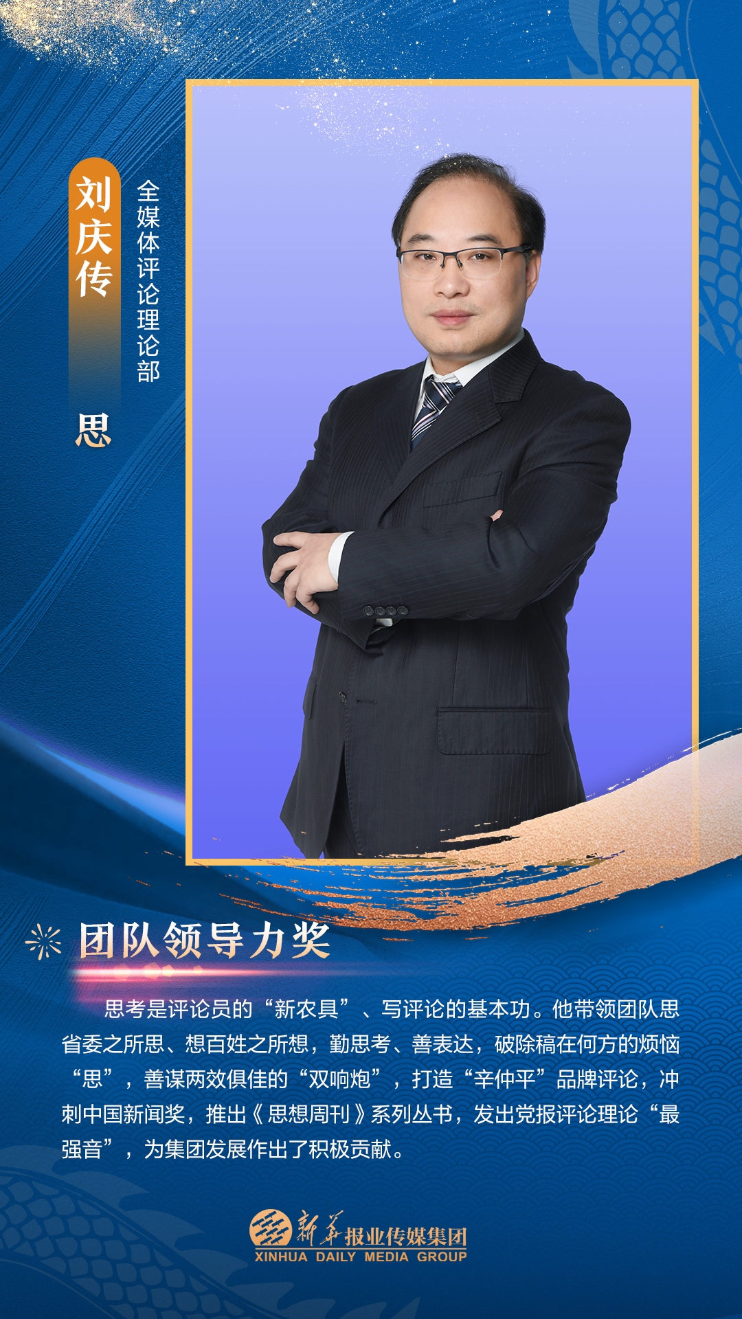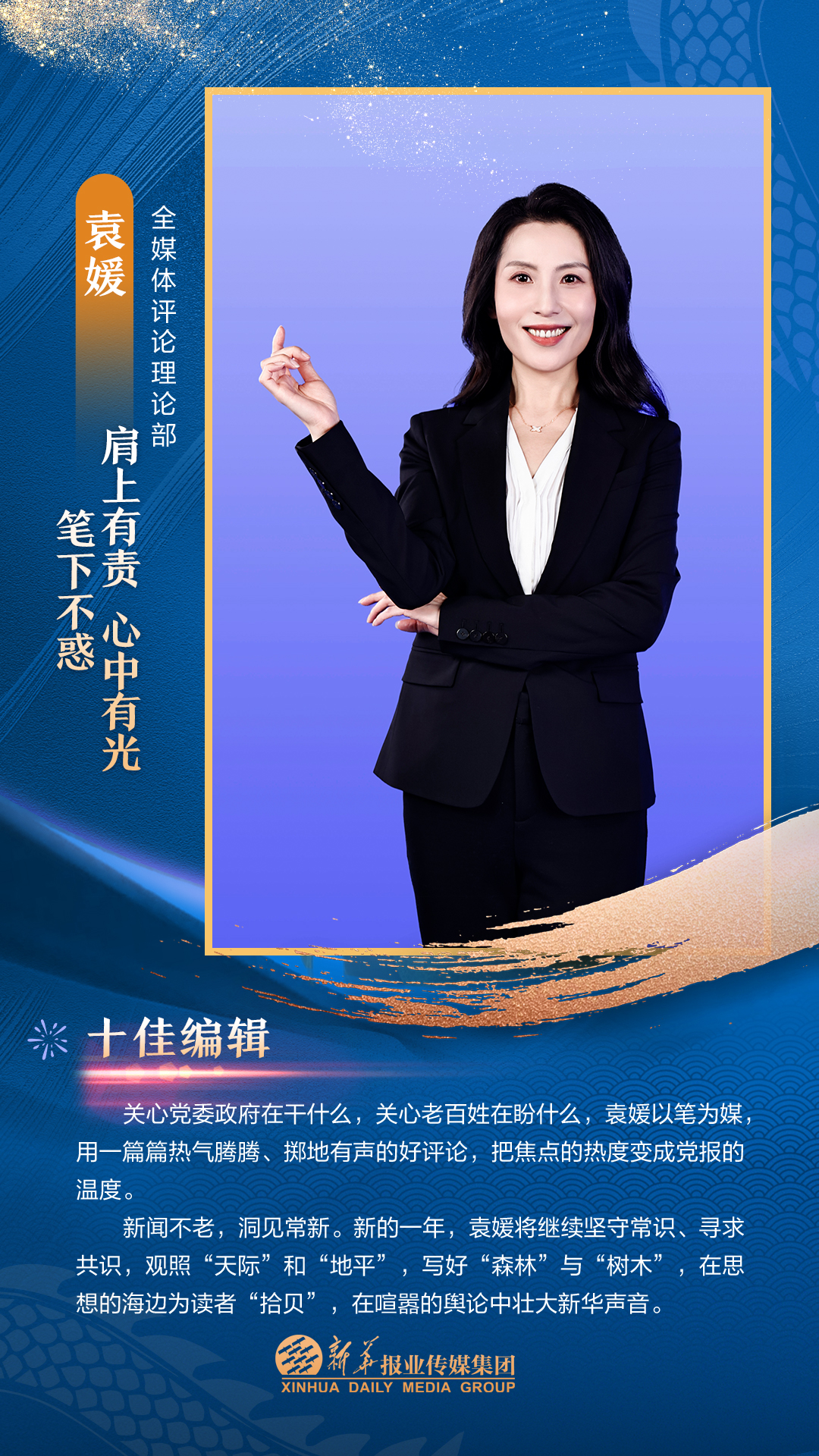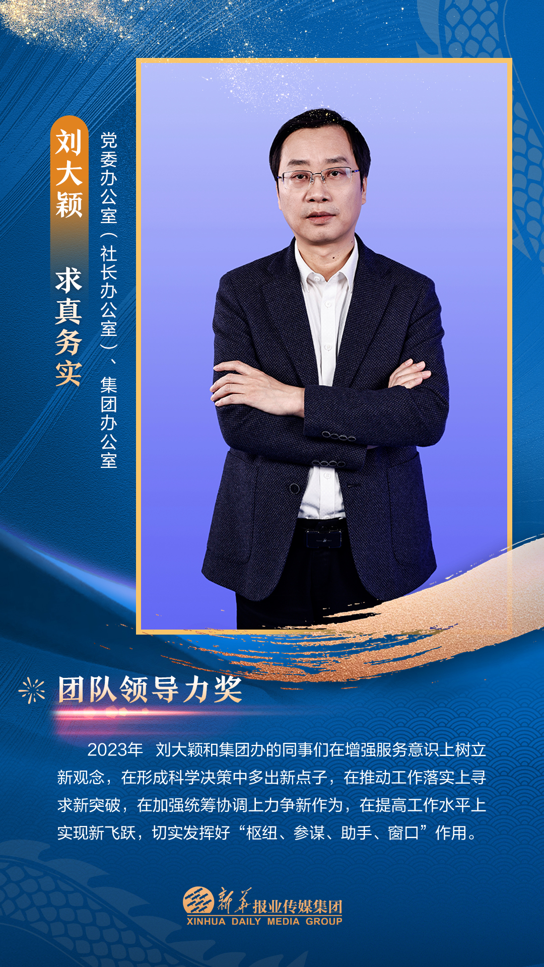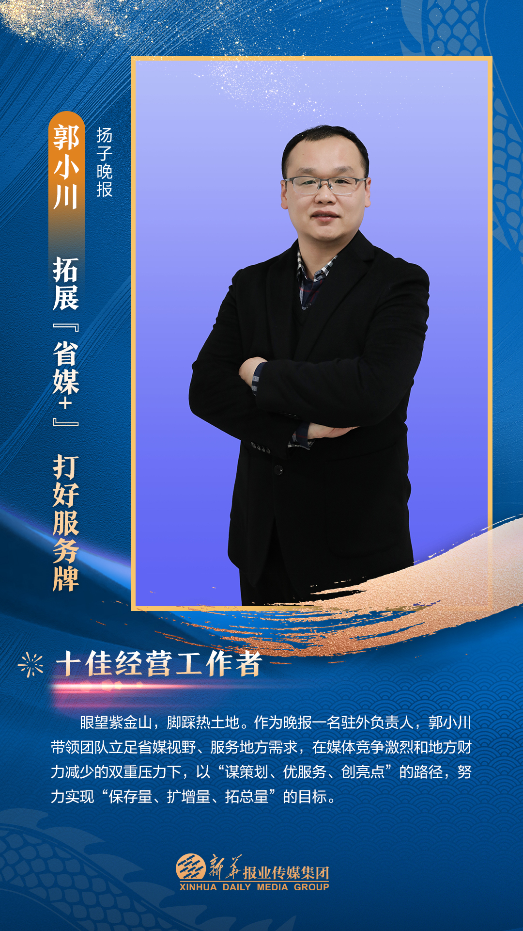 他们是集团3000多名员工的先进代表,从集团各个岗位、部门汇聚而来。在每一个新闻的现场披荆斩棘,只为把第一手讯息向外传播;在每一个寻常的日子夜以继日,只为及时把最好的版面交给读者;在每一个重要活动筹备中绞尽脑汁,只为把新华IP擦得更亮;在每一个看似不起眼的角落加班加点,只为各项事务工作有序高效运转;在每一次服务时当好贴心“店小二”,只为护航集团高质量发展……