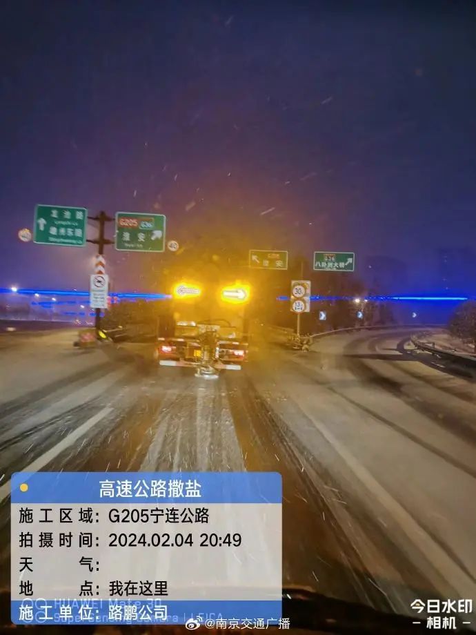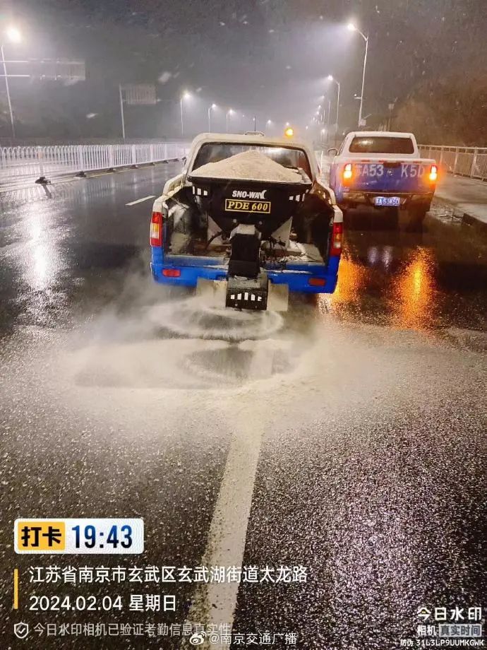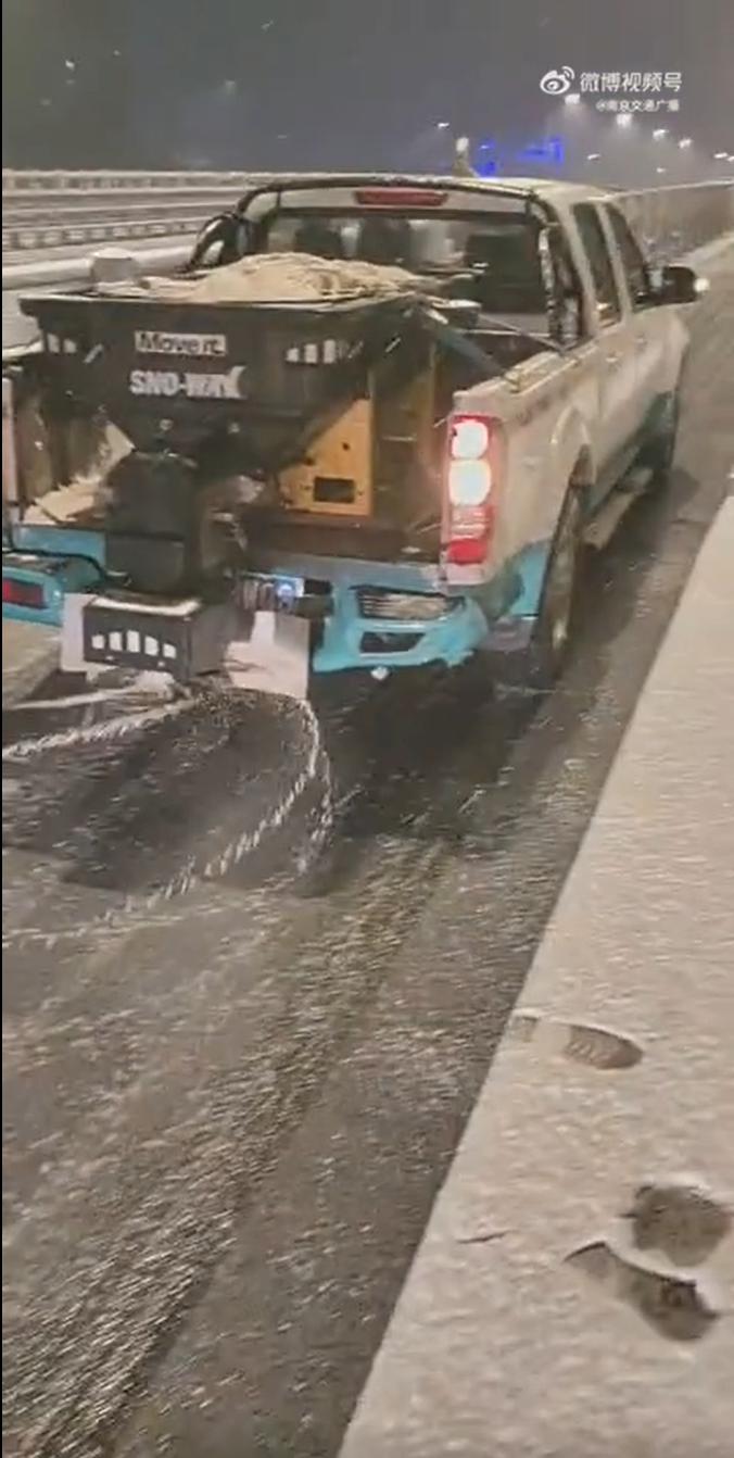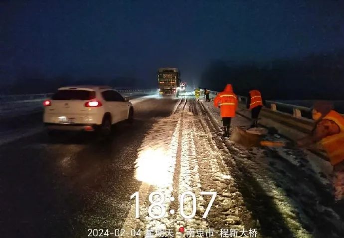 2月4日,南京市发布暴雪警报,六合交通迎战风雪,在全区管养667公里国省干线及县道重点路段、225座桥梁、2座互通全面开展撒盐除冰除雪工作。截至目前,已累计出动人员1020人次,车辆机械57台次,使用融雪剂170吨。与此同时,溧水区交运局也对管养路段桥梁陡坡急转弯进行预防性防冻作业。