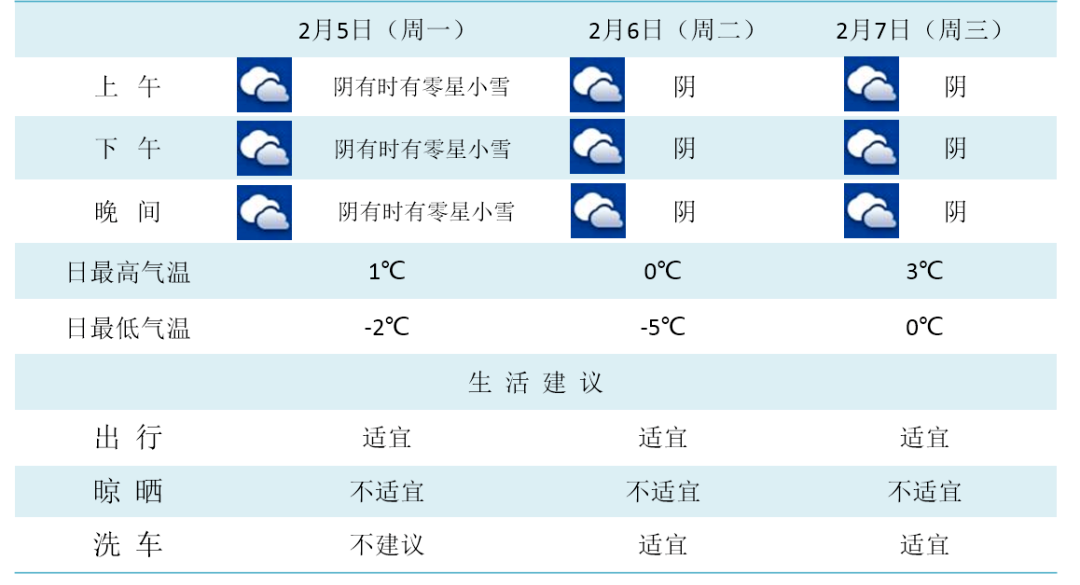 2月5日最高气温: 0℃到1℃