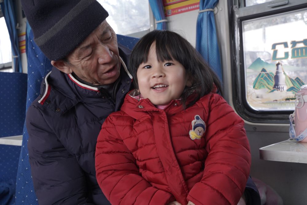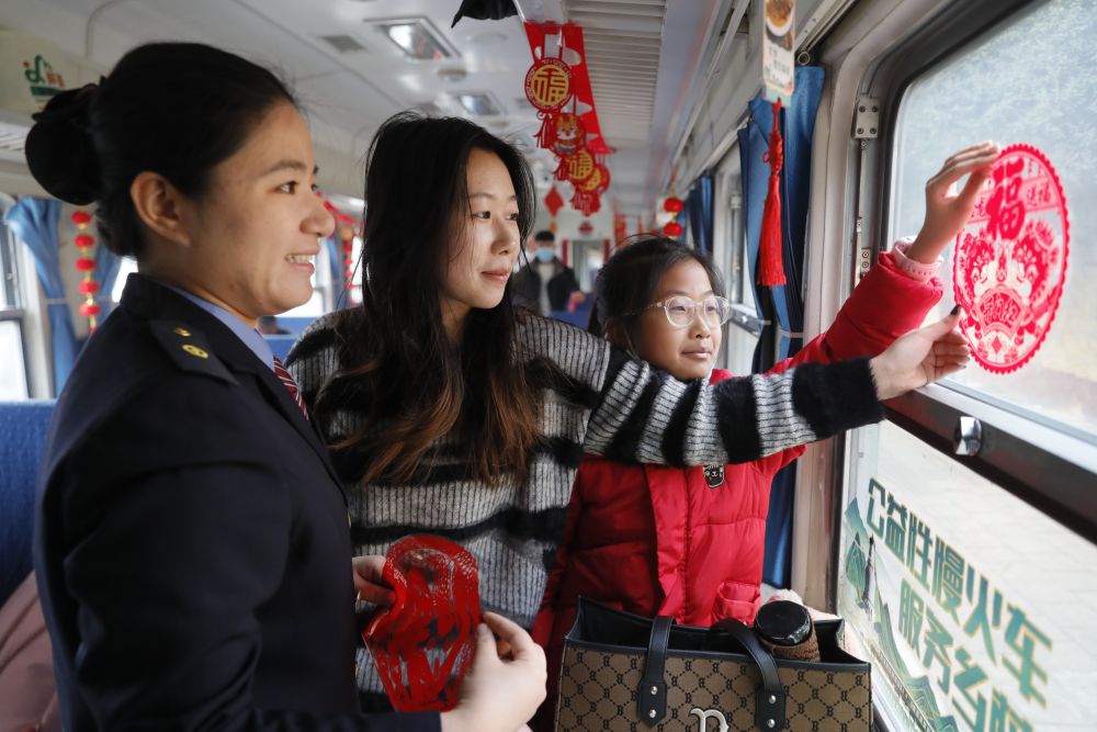 透过车窗,田地覆满积雪,一个个村庄被前行的列车抛在身后。冬日阳光映得窗户上的“福”字格外温暖,小年这天,归家心切已经挂在脸上。