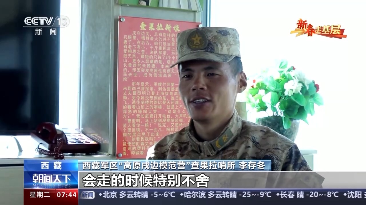 西藏军区“高原戍边模范营”查果拉哨所 李存冬:因为有国才有家,只要国守好了,才能有家,才能更好激励我们戍守边关,能够更好扎根高原。