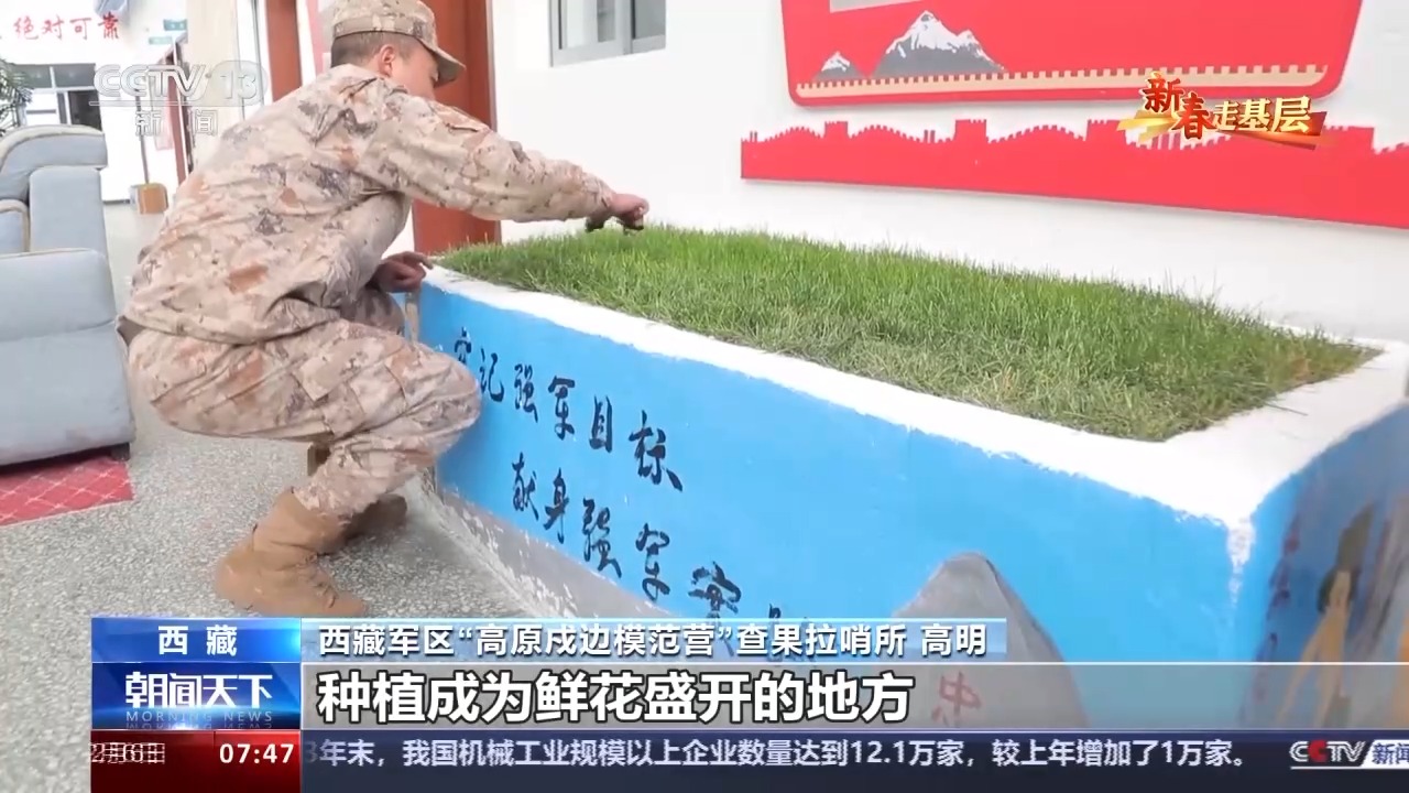 西藏军区“高原戍边模范营”查果拉哨所 高明:我们的战士现在正在养护我们的花草。在海拔5318米的这个地方,我们的花草非常难长,为了能够营造这种氛围,我们还是想把这个地方能够种植成为鲜花盛开的地方。