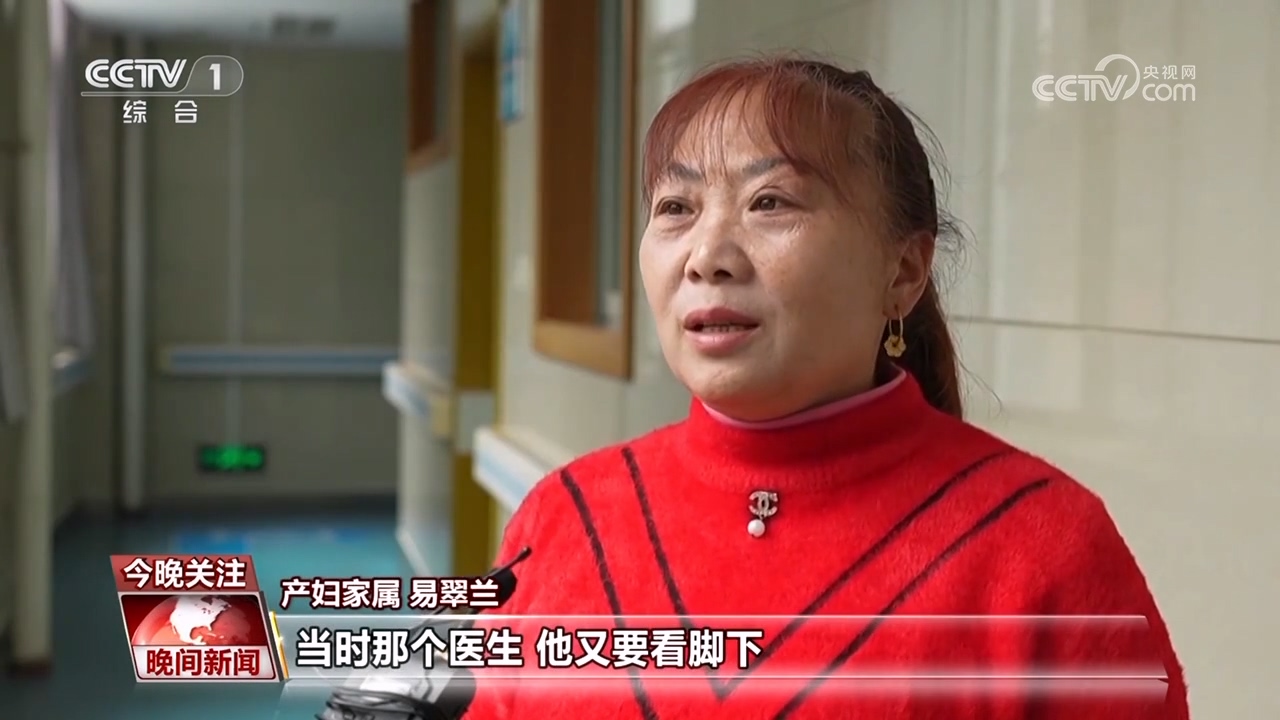 产妇家属 易翠兰:当时那个医生,他又要看脚下,又要看孕妇,脚滑摔跤了又要赶紧起来又要看孕妇,特别是医生从坡上摔下来溜下来,特别感动。