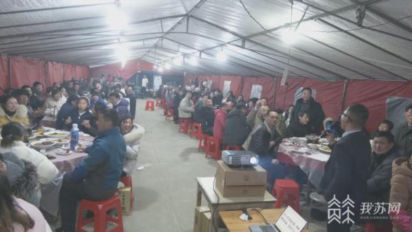 年三十晚上,在扬州甘泉街道老山村新庄组,100多名村民欢聚一堂、共吃年夜饭,上演一场欢天喜地的超级大团圆。