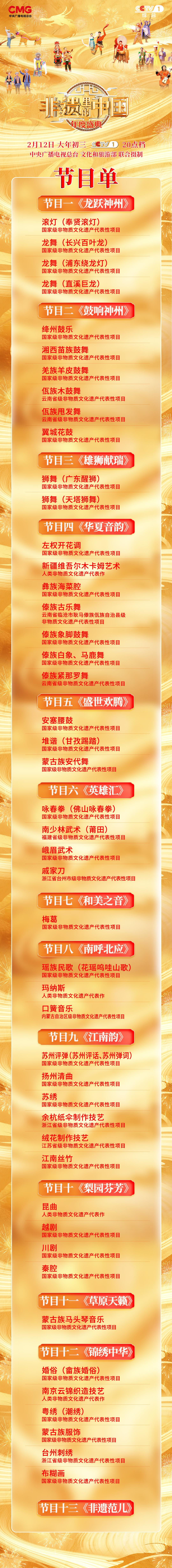 2月12日(大年初三)20:00档,锁定央视综合频道(CCTV-1),《非遗里的中国》新春年度盛典,一起感受非遗年味儿!央视频APP同步推出。