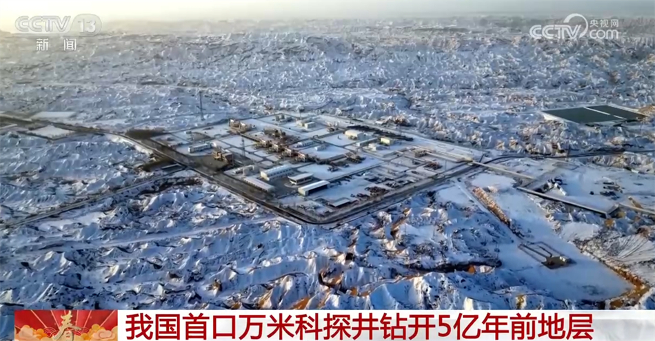 总台央视记者 张伟:我现在位于新疆塔克拉玛干沙漠腹地,春节期间,这里的100多名石油工人持续作业,这口我国首个万米科探井已经换上了最新的钻头,正加速向万米掘进。