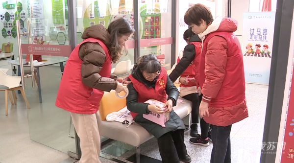 假期当中,江苏各地社区、爱心组织纷纷开展集体志愿服务。在南京市江宁区湖滨社区,一场新春公益活动正在火热开展。免费问诊,免费理发,免费磨刀,吸引了众多附近居民前来参加。徽商银行南京分行志愿者们在现场也摆放了展架和宣传折页,开展针对老年人的适老化服务宣传活动,和社区老人同贺新春的同时,一对一教老年朋友使用“简e版”手机银行,助力老年朋友跨越数字鸿沟。