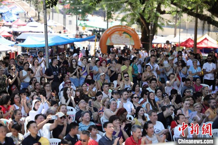 当地时间2月11日,巴西伊瓜苏和平广场,前来观看文艺演出的观众。 郭敬文 摄