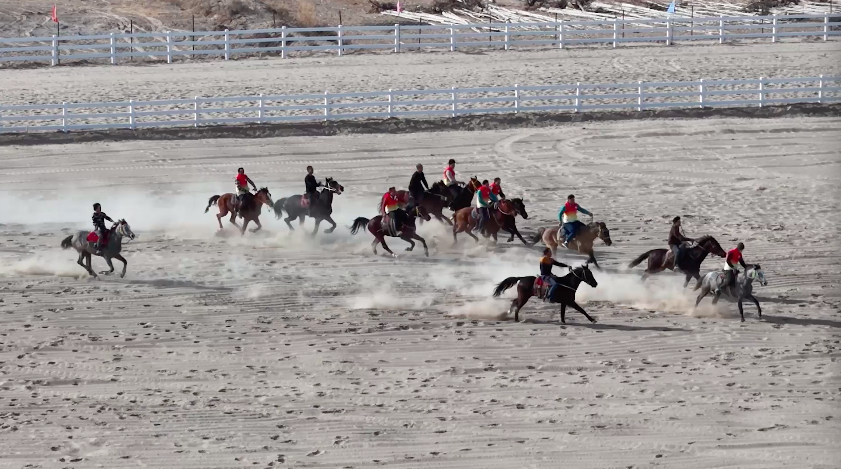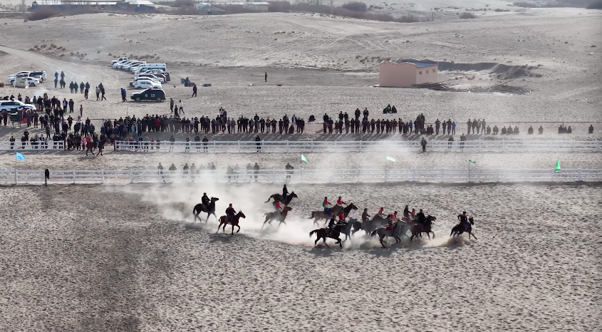 欢度龙年新春,2月14日,新疆新和县在沙漠花海举办了2024年第二届叼羊比赛。来自疆内的赛马叼羊队汇聚新和参加比赛,让新和广大人民群众在欢度新春佳节之际,领略了马背上的民俗运动的韵味。