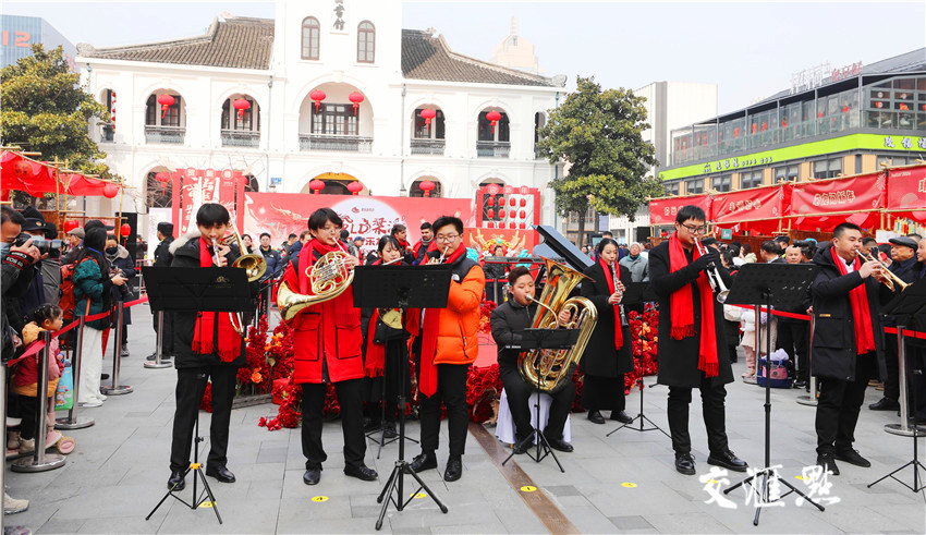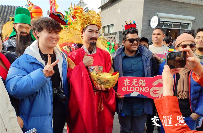 2月8日,“ WORLD梁溪 齐乐龙龙”梁溪新春音乐show在无锡梁溪区崇安寺二泉广场举行。外籍友人、港商、台商代表及广大市民朋友们其乐融融共度中国龙年。毛伟骏 摄 视觉江苏网供图
