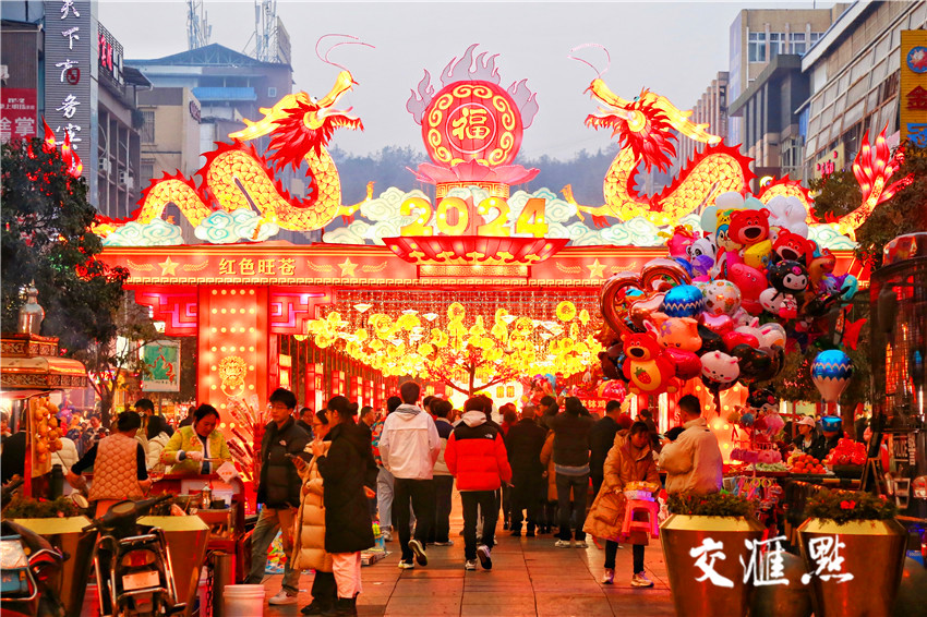 2月13日,四川省广元市旺苍县的新年大集热闹非凡,龙形彩灯满满年味,大集里还汇聚了各类年货、小吃、游戏项目,满满人间烟火气。杜鼎鼎 摄 视觉江苏网供图