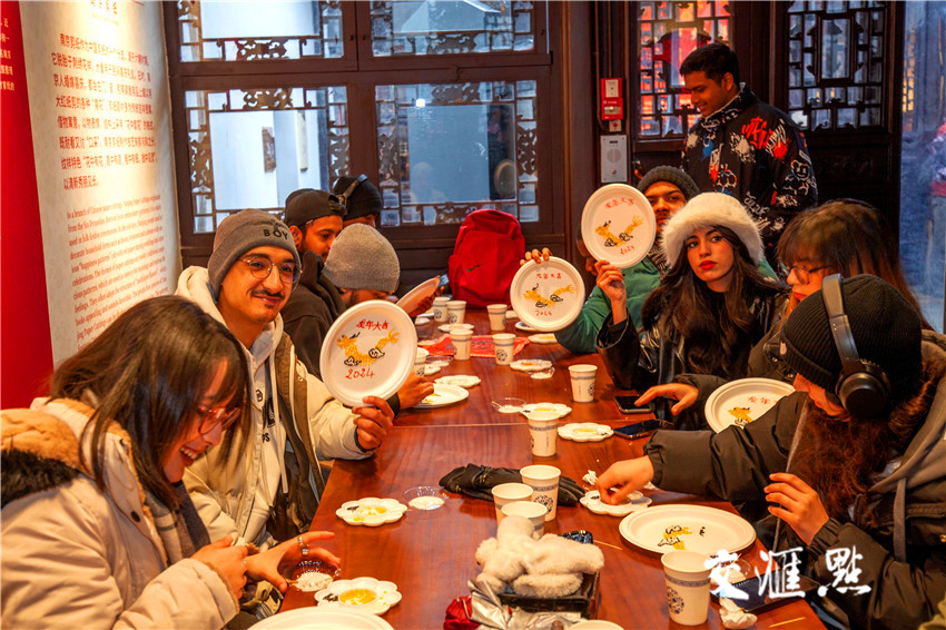 2月3日,外国留学生在南京民俗博物馆学做非遗种子画,共迎甲辰龙年。任康 摄 视觉江苏网供图