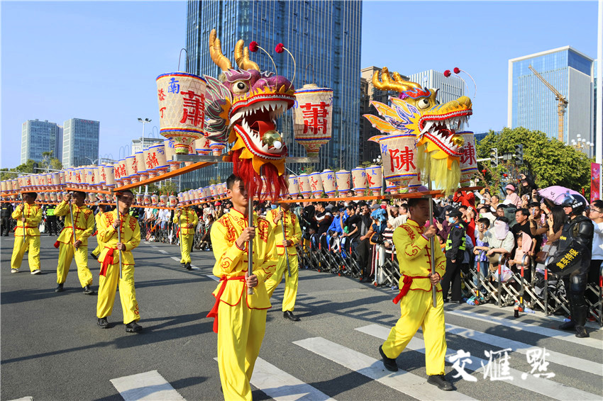 2月15日下午,福建泉州,2024年“龙腾东海·福满泉州”民俗踩街在东海中央商务区热闹举行,将龙年春节传统文化活动推向高潮。周古凯 摄 视觉江苏网供图