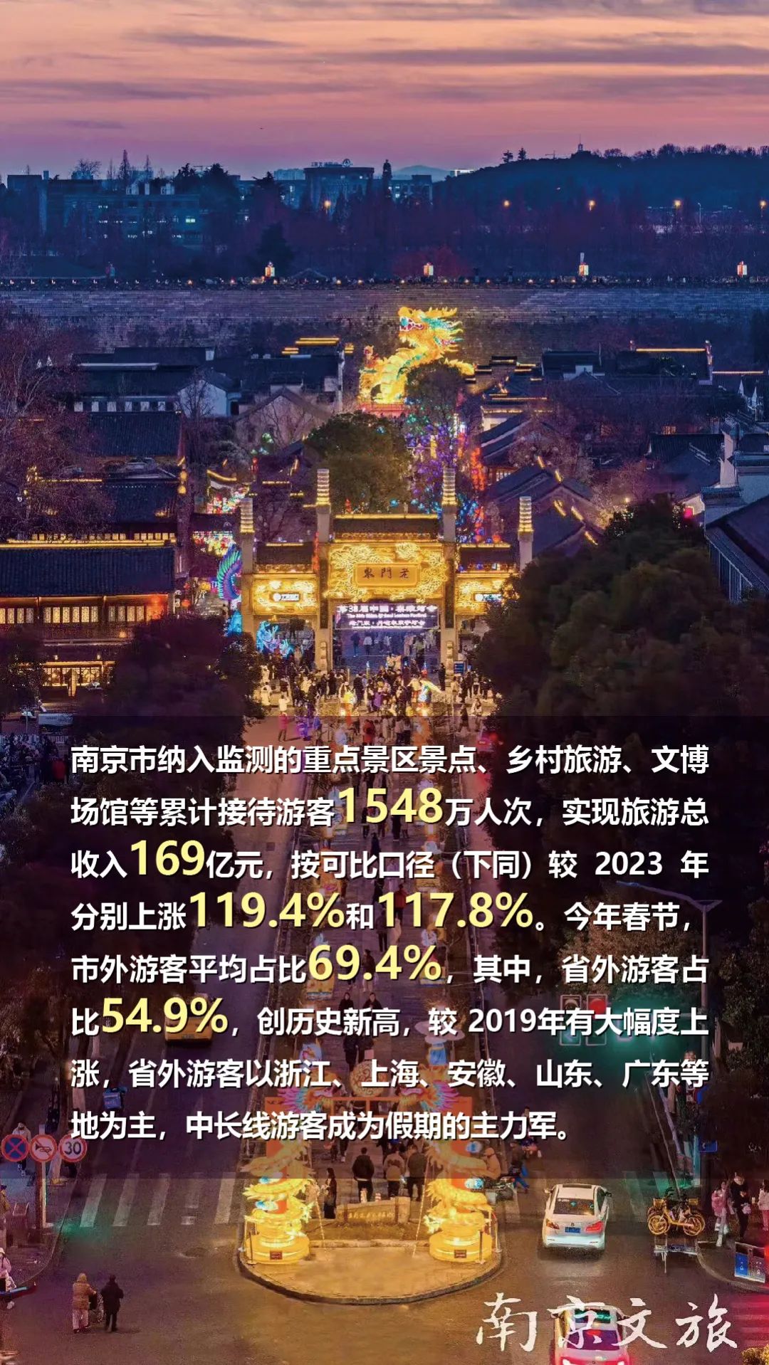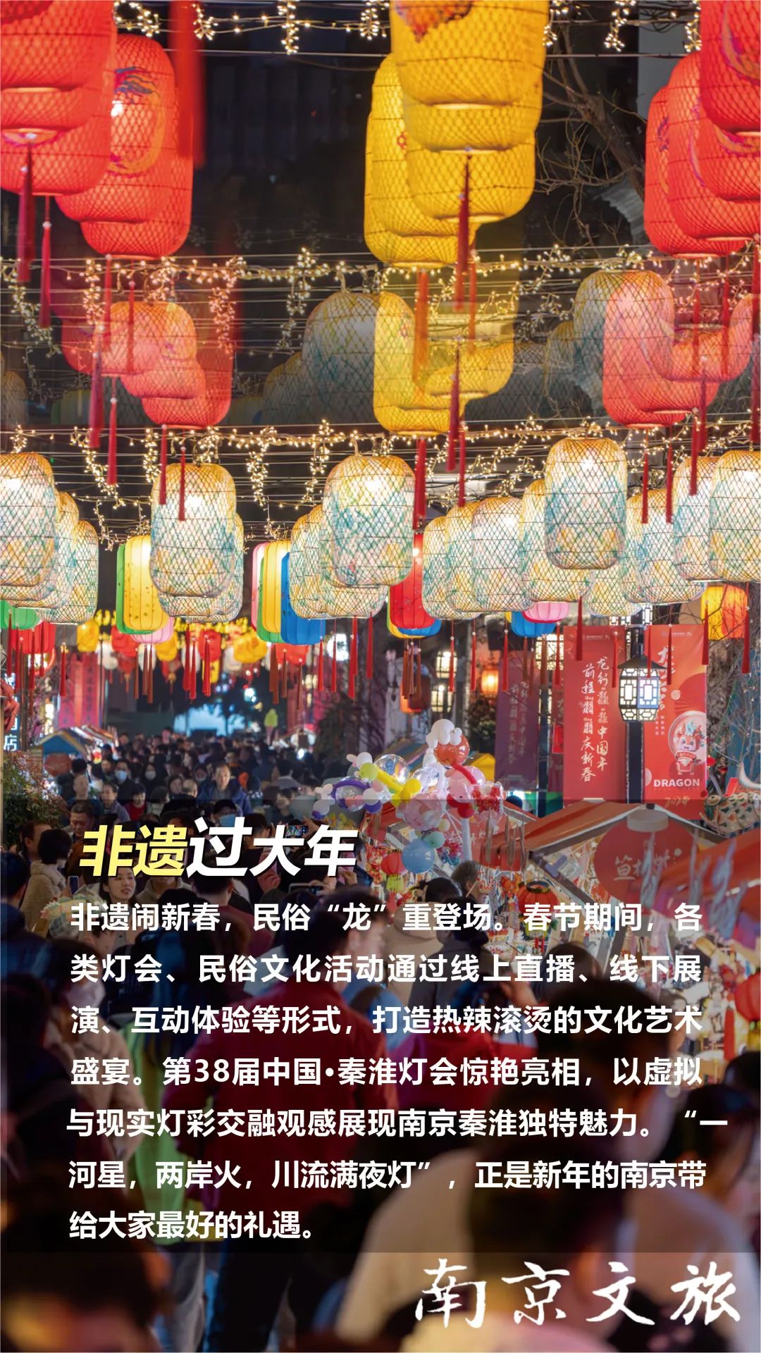 逛夫子庙,赏秦淮灯会之璀璨;走进博物馆,探寻“龙”文化之深远;置身乡村,看舞龙舞狮之豪迈……相聚金陵,共启新岁,2024年“超长”春节假期,南京捧出的“文旅盛宴”可谓热辣滚烫。