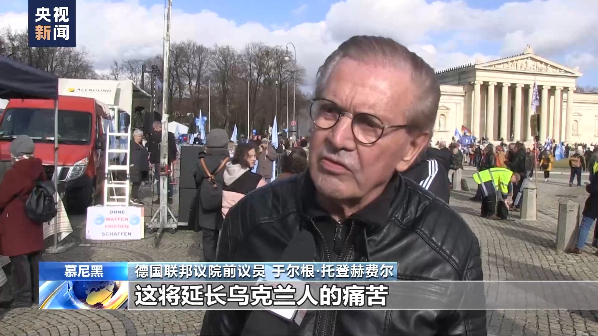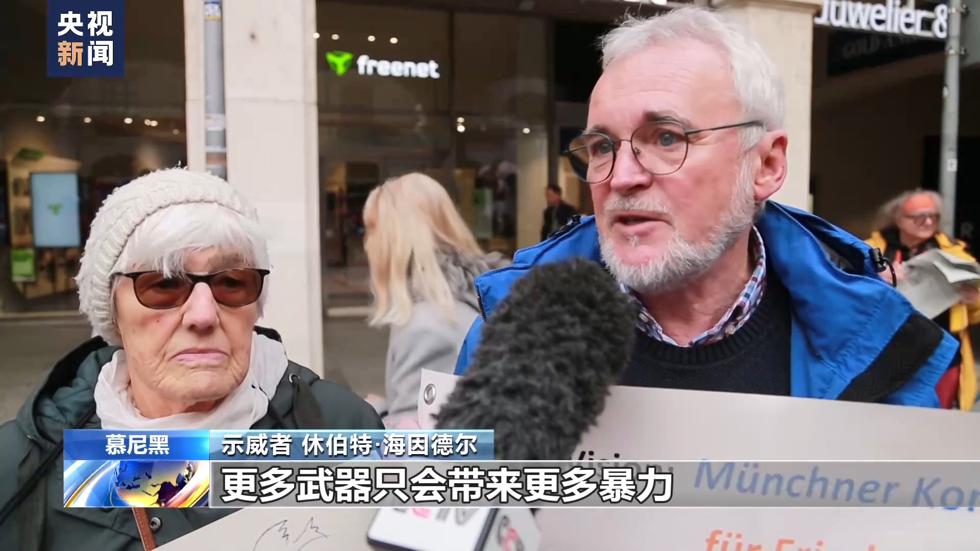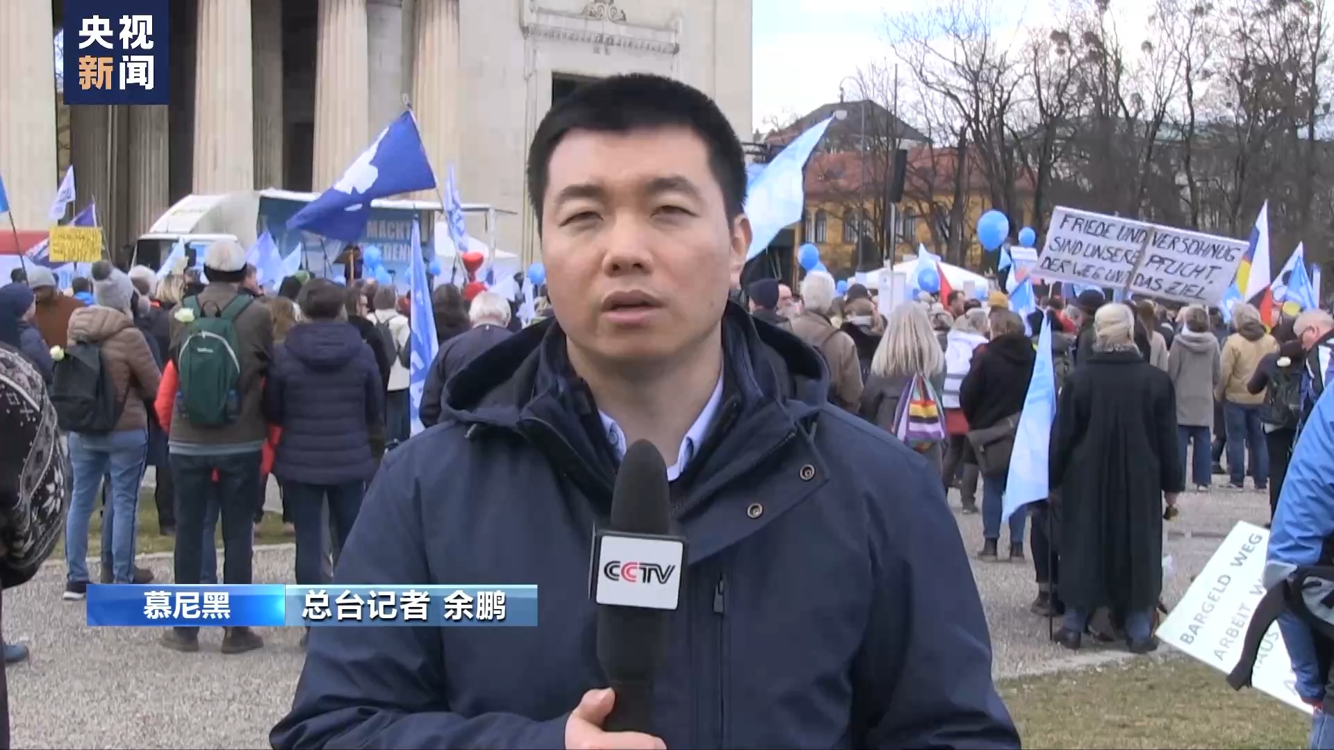 总台记者 余鹏:在慕尼黑安全会议的第二天,会场附近发生了多场示威活动。民众呼吁前来参会的官员,尤其是美西方国家的官员停止拱火俄乌冲突和巴以冲突,真正推动各方实现和平,不要把安全会议变成“战争”会议。