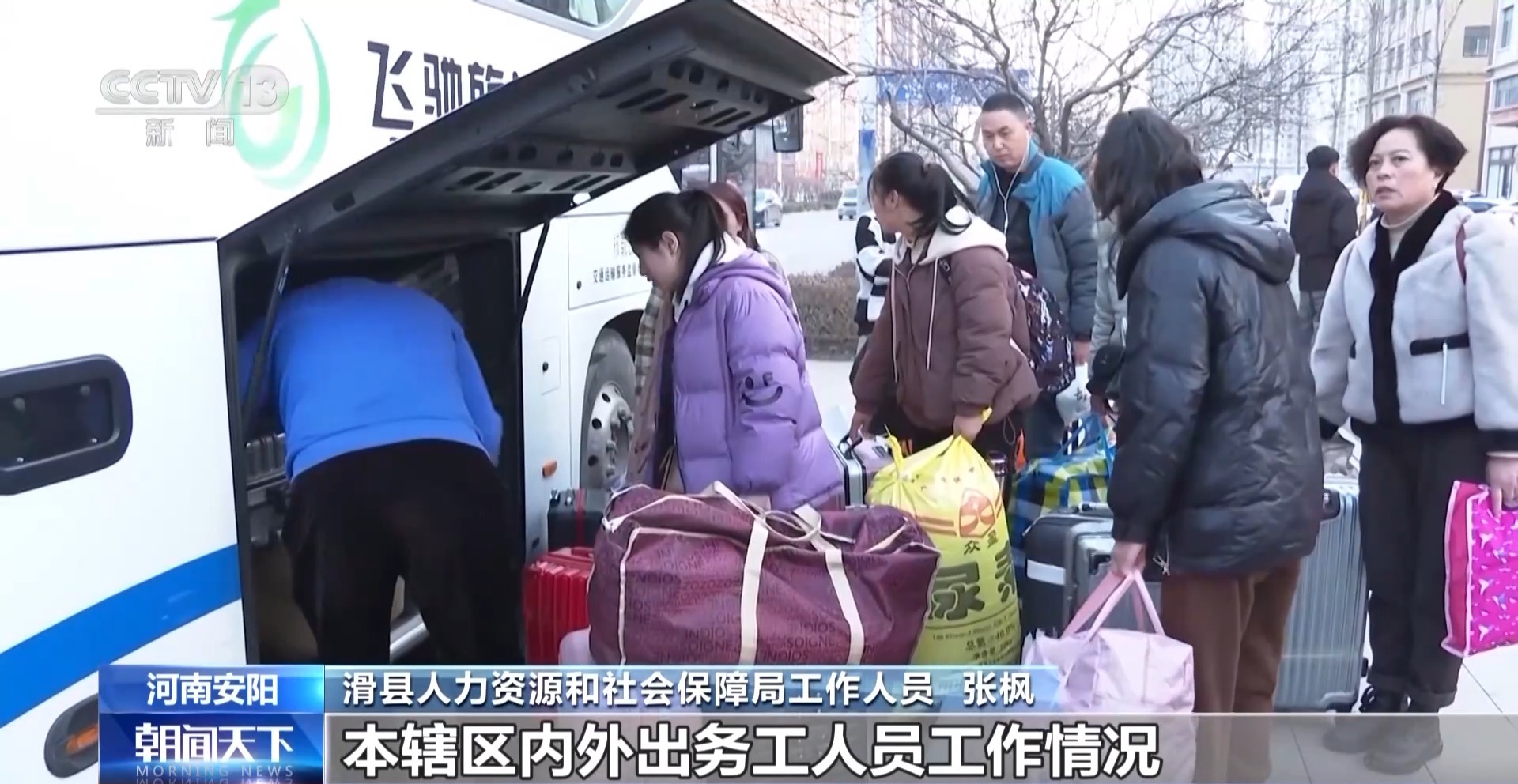 在河南安阳滑县一处劳务输出转乘点,50多名务工人员正带着行李,统一乘坐由当地人社部门牵头协调,直达江苏各重点产业园区的客运大巴。