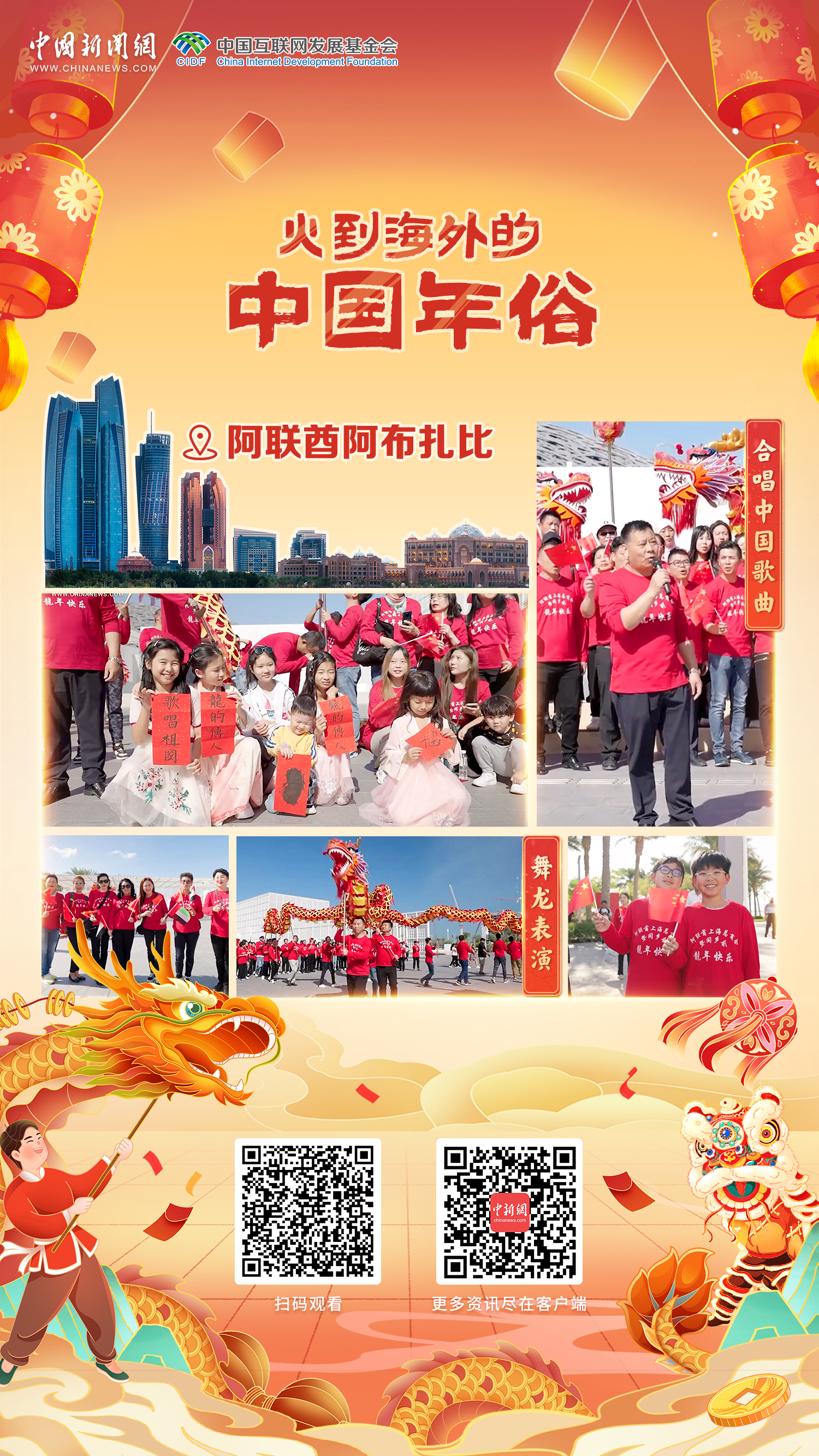 伴随着“龙的传人”的歌声,近期,百余华侨华人在阿联酋阿布扎比卢浮宫欢聚共庆新春佳节。舞龙表演吸引各国民众参与互动,分享新年的喜悦。