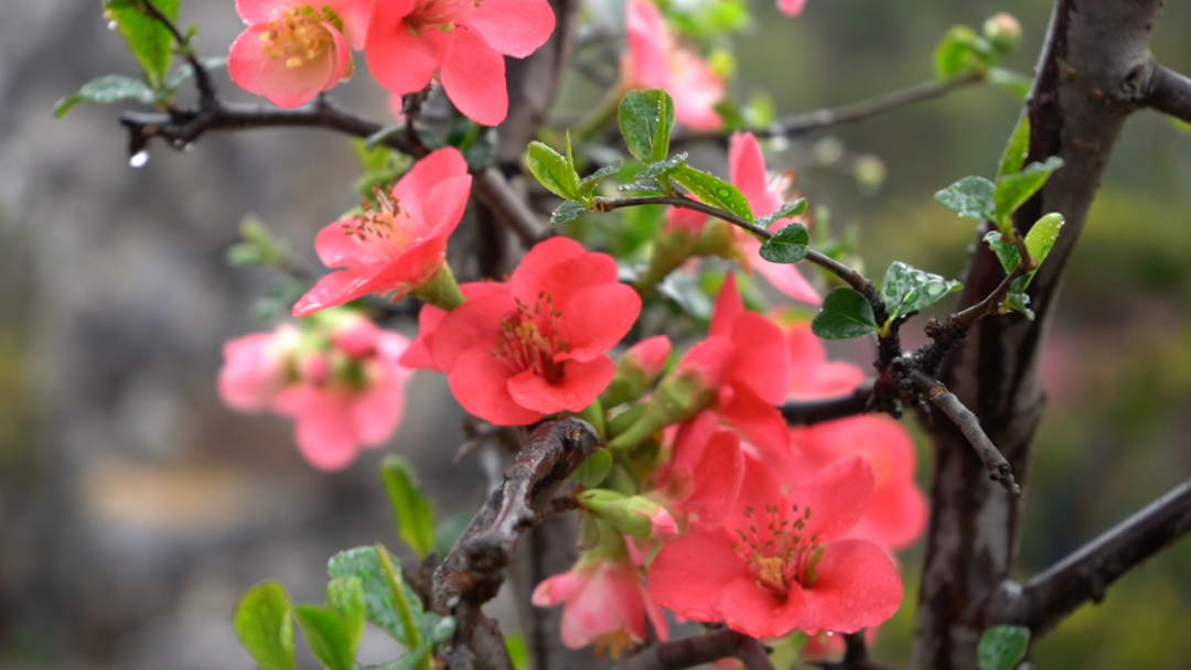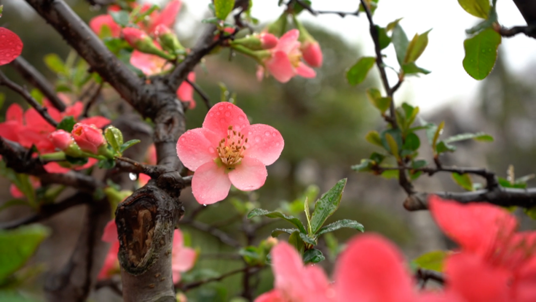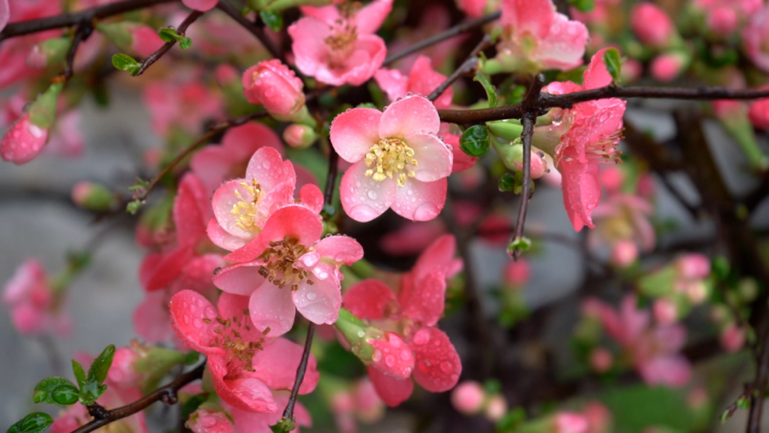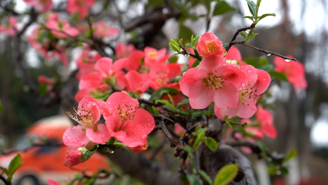 早春海棠初着雨