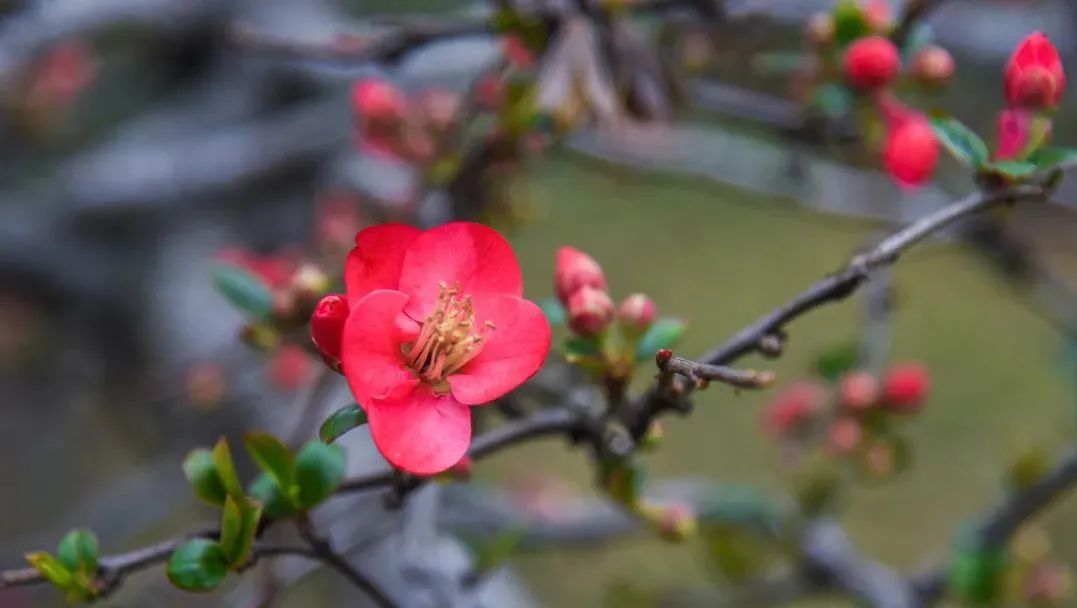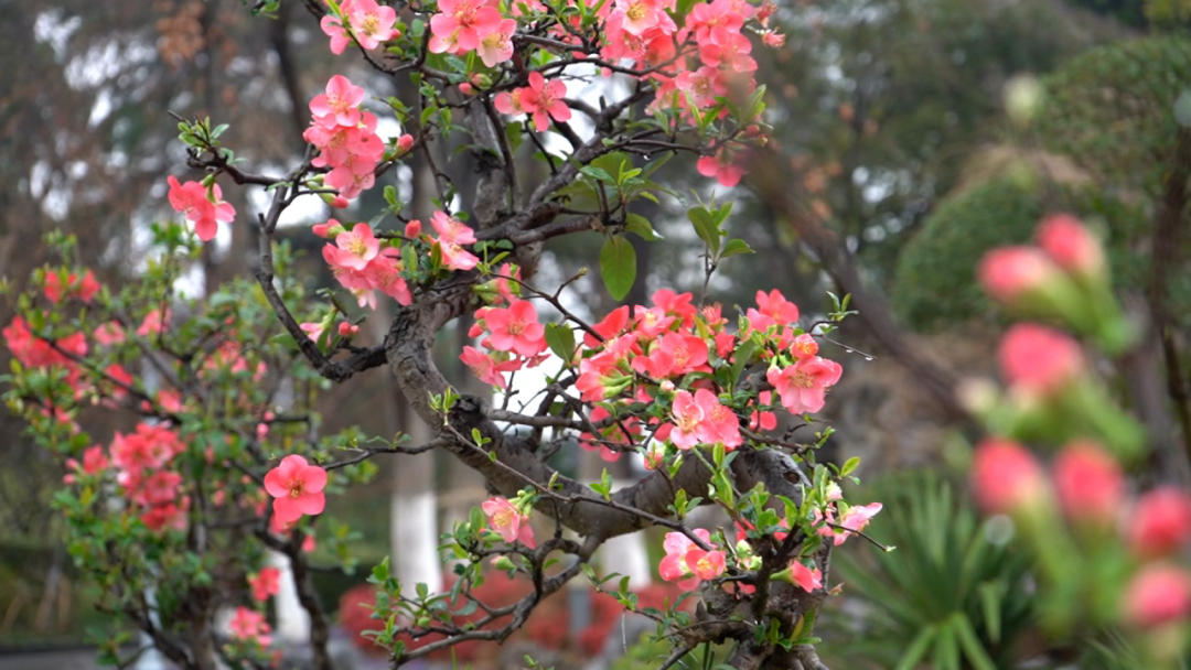 此番盛开的海棠花期较早