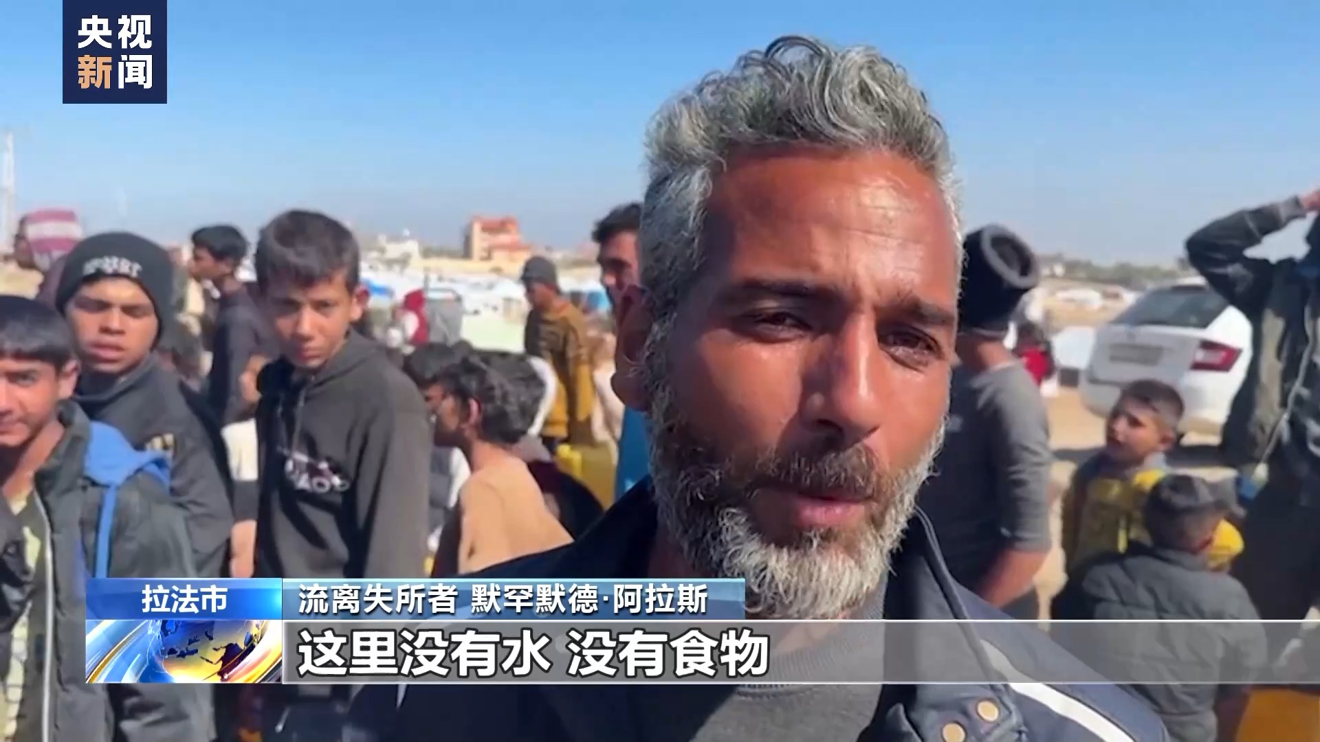 流离失所者默罕默德·阿拉斯:正如你所看到的,这已经演变成一场针对巴勒斯坦人的饥饿之战,这里没有水,没有食物,什么都没有。每天我们都在遭受苦难,这一切只是为了能够收集到水。为了多打一些水,我和儿子很早就来了,我已经在这里等了一个小时,周围这些人都在等待打水,但并不是所有人都能打到水,大概有一半人会没有水,每天都是这样。